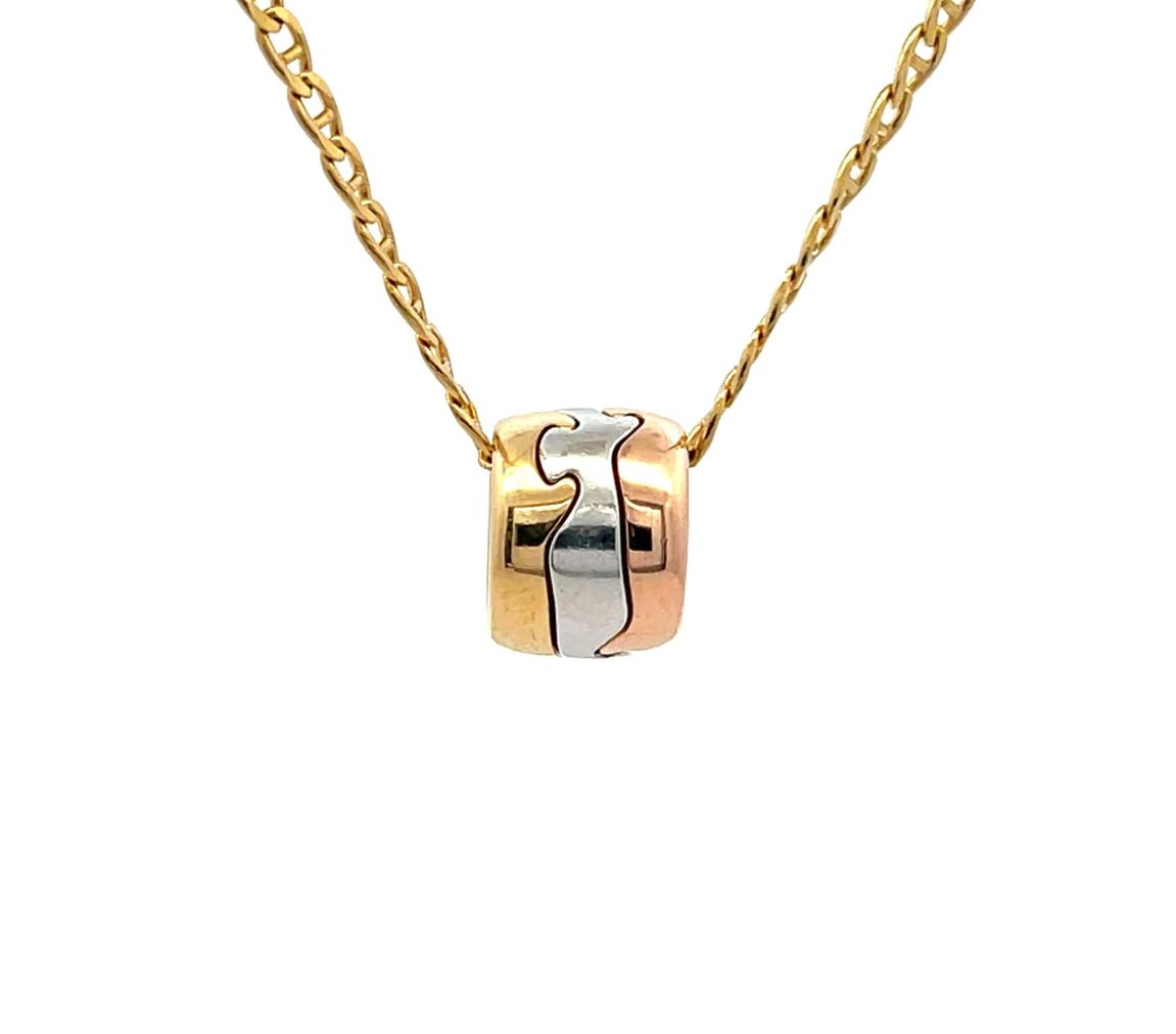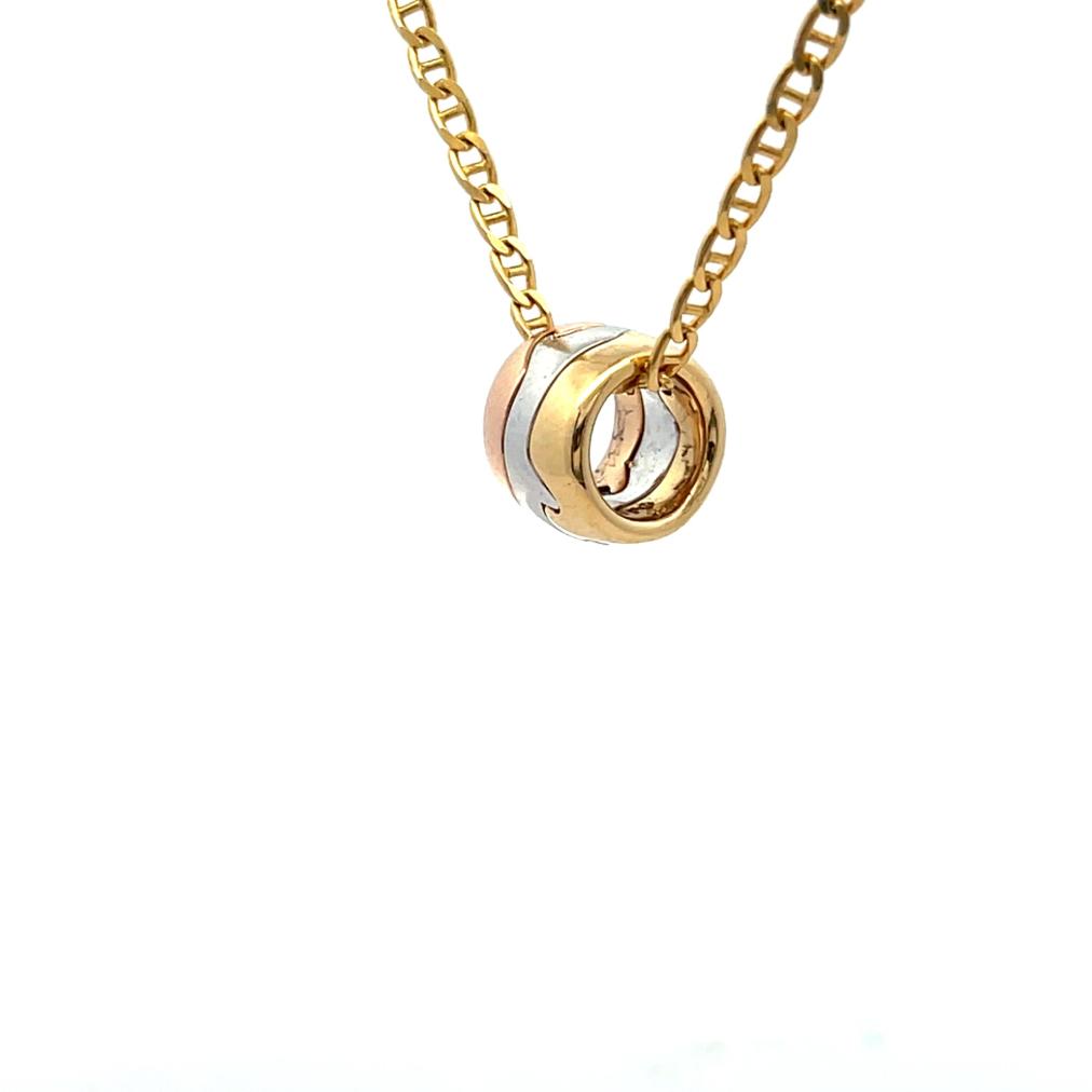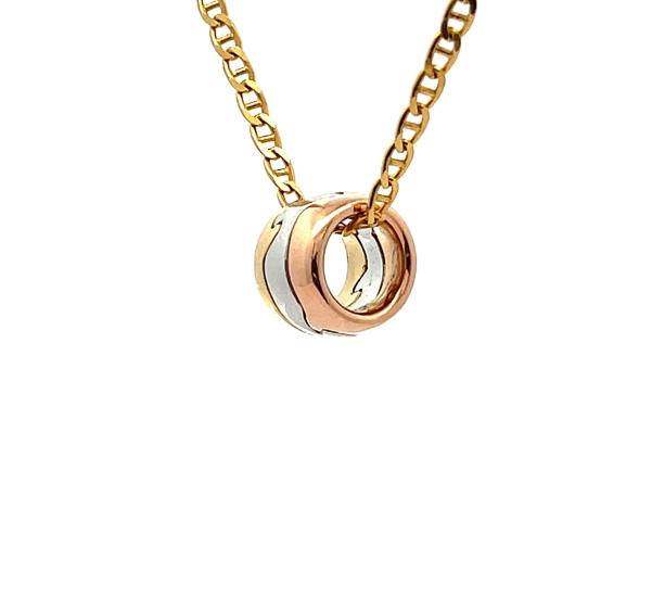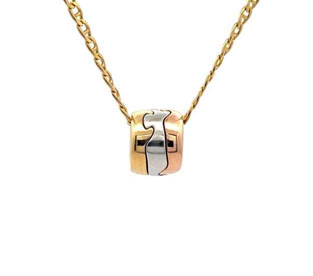 Přívěs z kombinace žlutého, bílého a růžového zlata o ryzosti 750/1000, punc kohout. Váha 6,25 g, rozměr 8,5 x 11 mm.