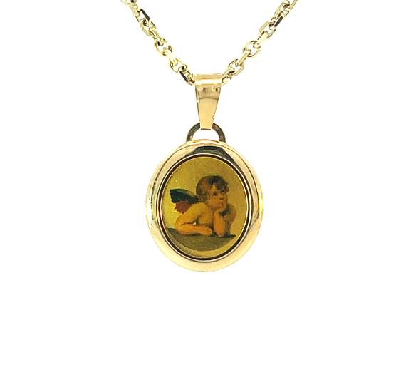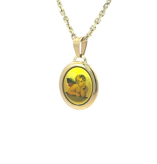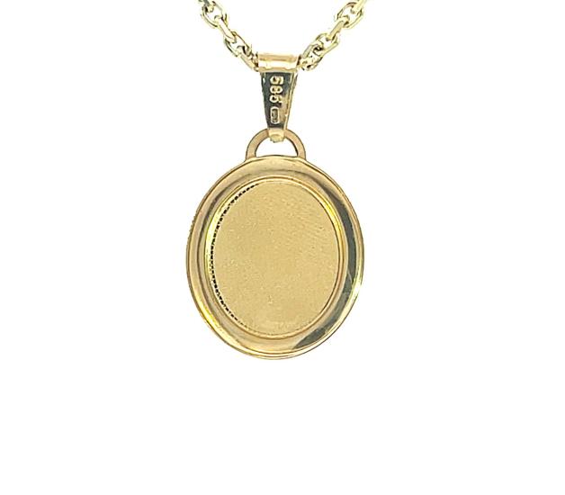 Zlatý přívěs o ryzosti 585/1000, punc labuť. Váha 0,88 g, výška včetně očka 24,5 mm, v nejširším bodě 15 mm. Řetízek není součástí nabídky.
