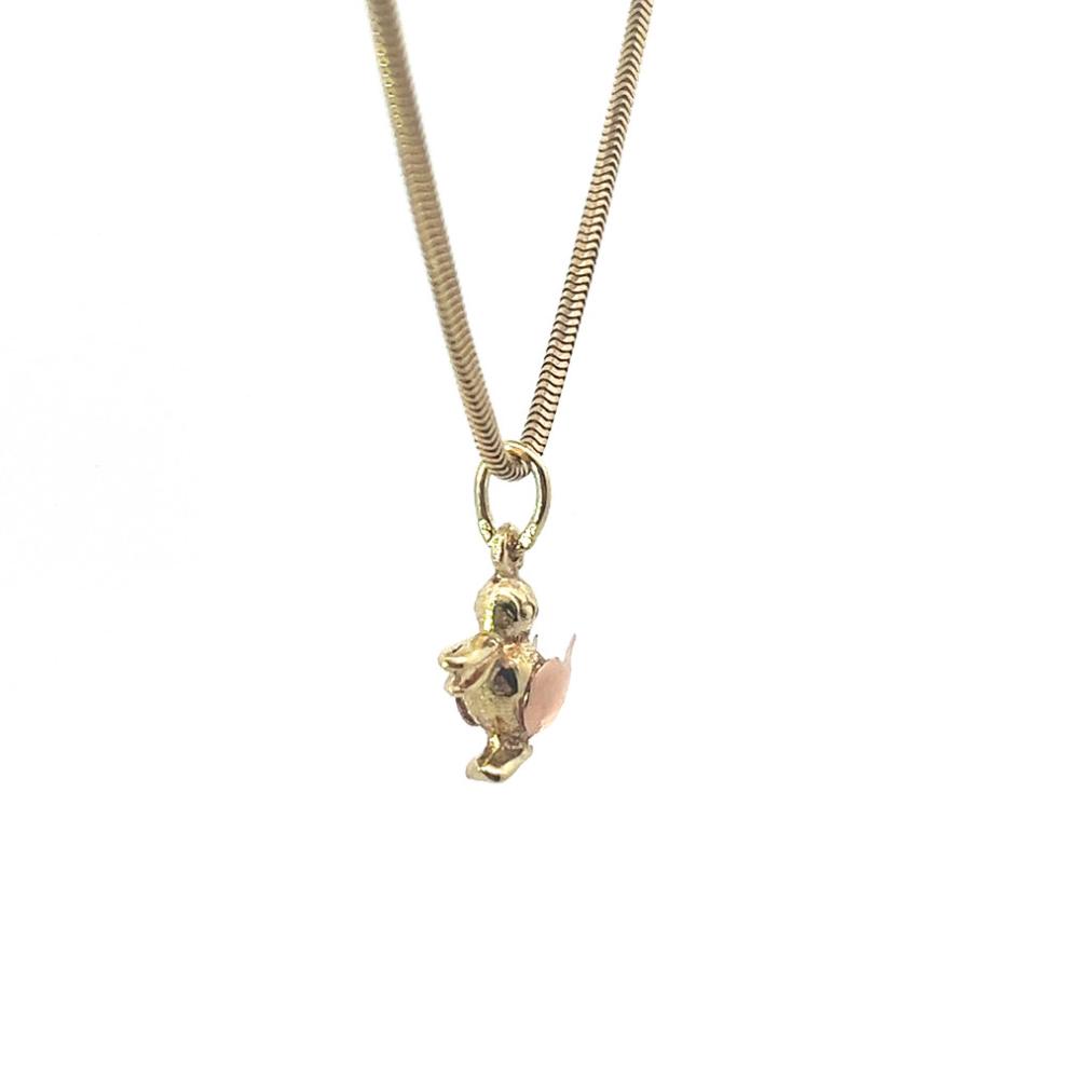 Přívěs z kombinace žlutého a růžového zlata o ryzosti 585/1000, punc čejka. Váha 1,11 g, výška včetně očka 17 mm, v nejširším bodě 11 mm. Řetízek není součástí přívěsu.