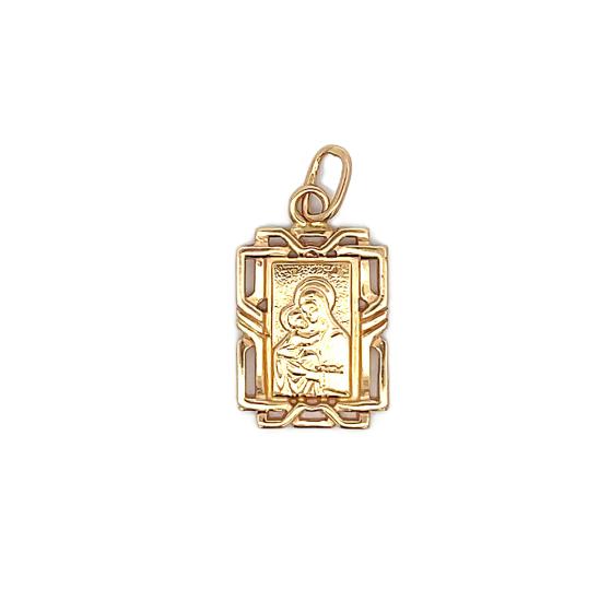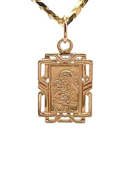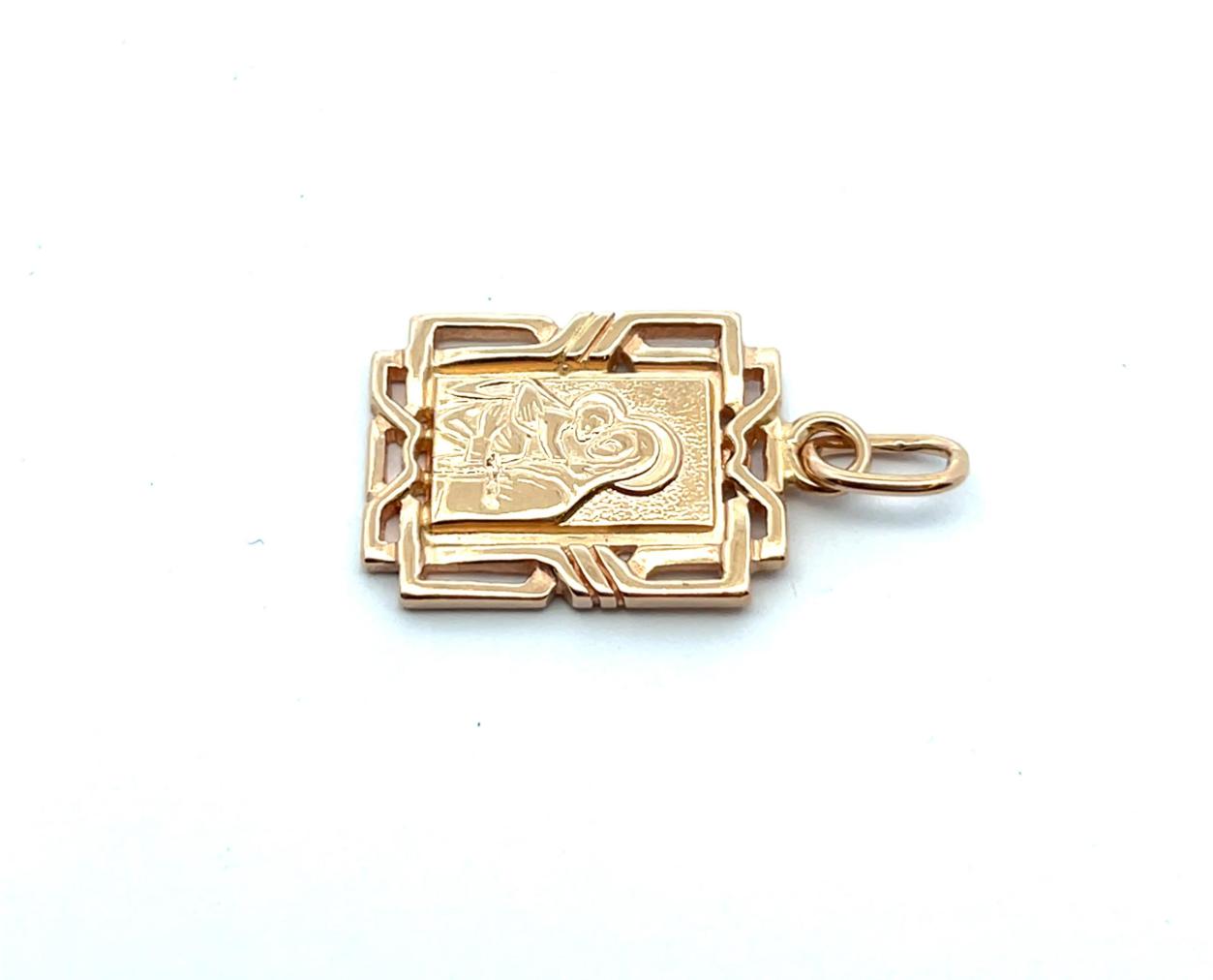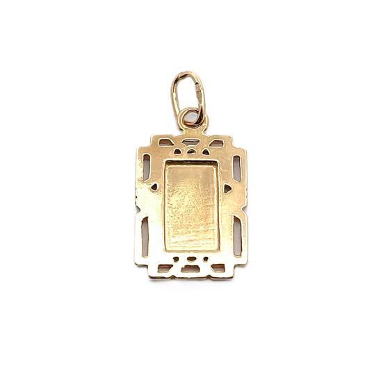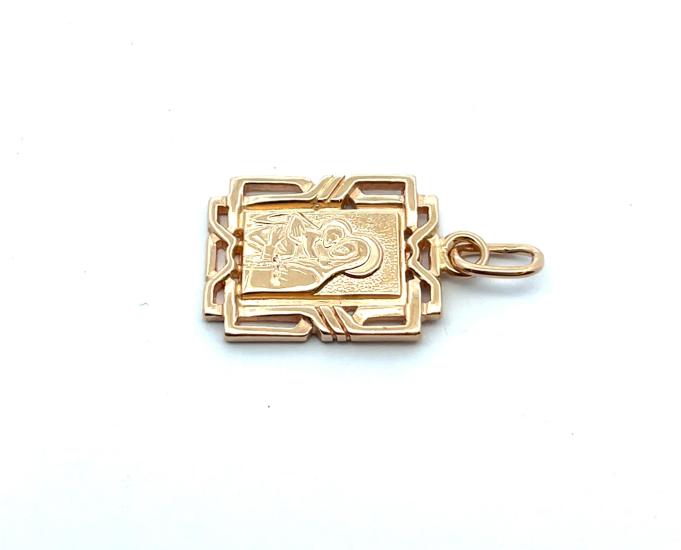Přívěs z růžového zlata o ryzosti 585/1000, punc labuť. Váha 3,79 g, výška včetně očka 30 mm, v nejširším bodě 15 mm.