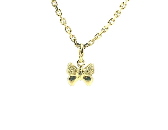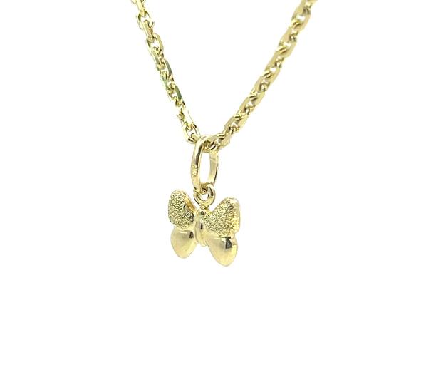 Zlatý přívěs o ryzosti 585/1000, punc labuť. Váha 0,58 g, výška včetně očka 14 mm, v nejširším bodě 9 mm.