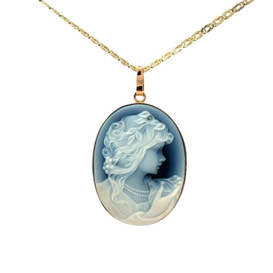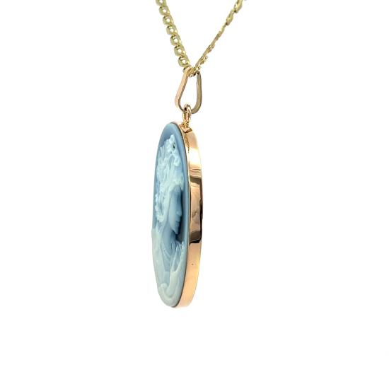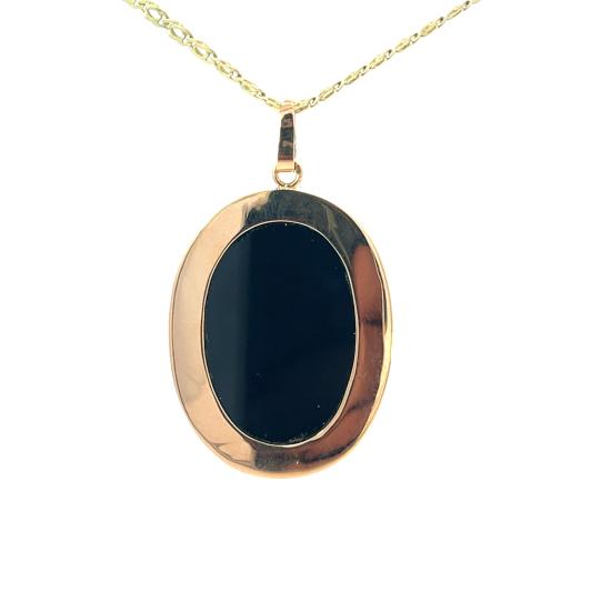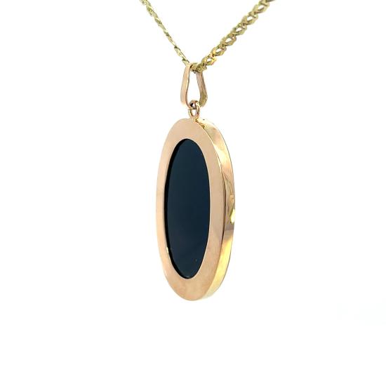 Zlatý přívěs o ryzosti 585/1000, punc labuť. Váha 11,77 g, výška 52,5 mm, v nejširším bodě 31 mm.