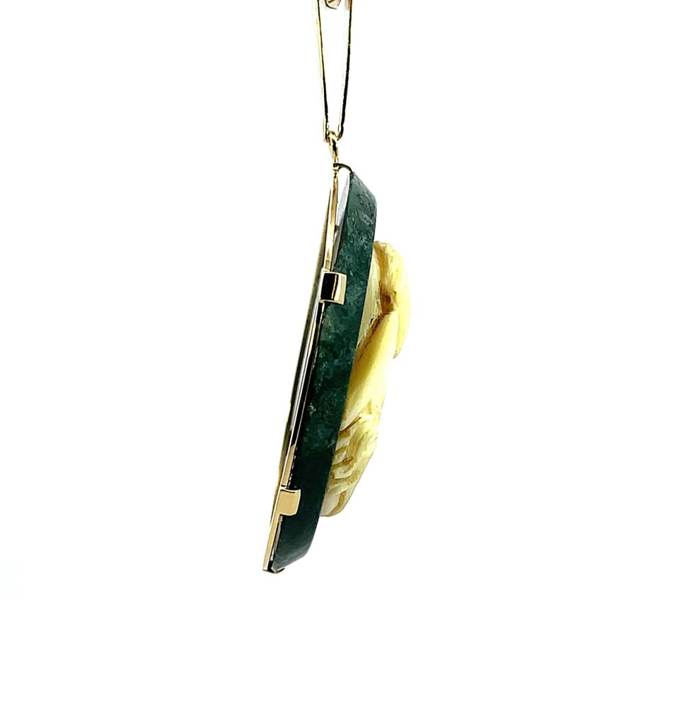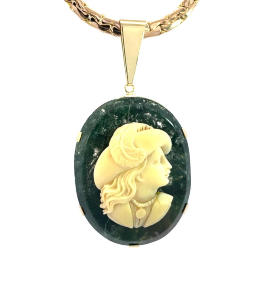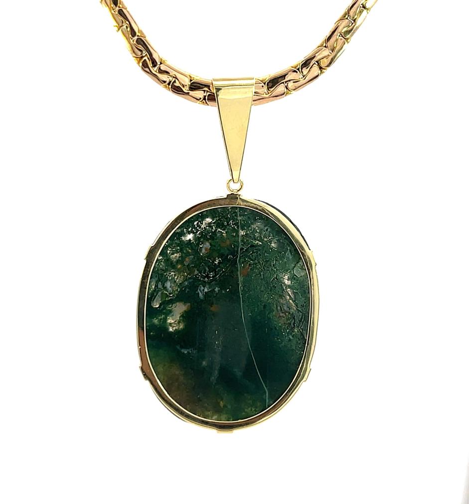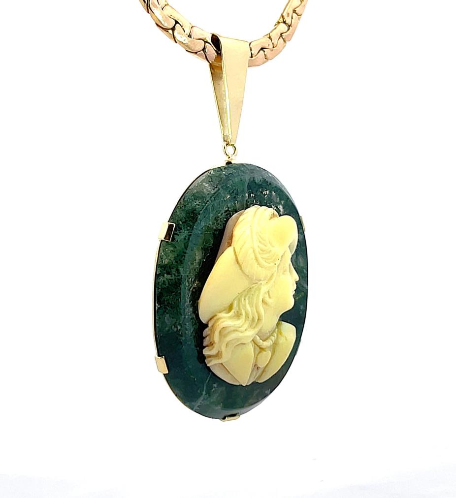 Zlatý přívěs s mechovým achátem a kamejí, 17,93 g