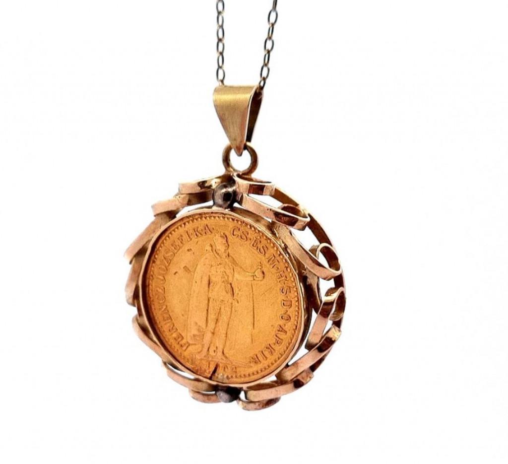 Zlatý přívěs s mincí - Rakousko Uhersko Franz Josef, 10 koruna, ražba1902