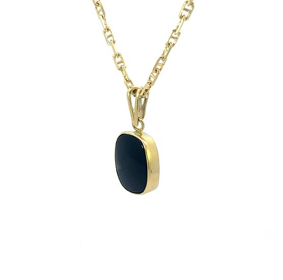 Zlatý přívěs o ryzosti 585/1000, punc labuť. Váha 2,63 g, výška včetně očka 28 mm, v nejširším bodě 14 mm.