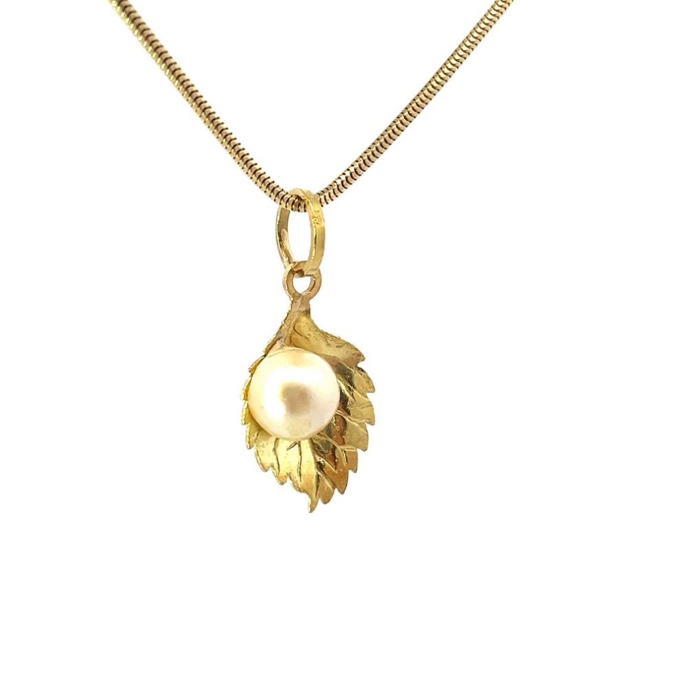 Zlatý přívěs o ryzosti 750/1000, punc kohout. Váha 1,92 g, výška včetně očka 28 mm, v nejširším bodě 13 mm, průměr perly 8 mm. Řetízek není součástí přívěsu.