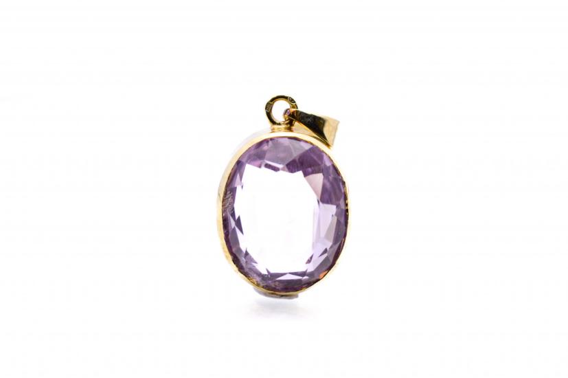 Krásný přívěs z přírodního ametystu v obrubě ze zlata o ryzosti 585/1000 s puncem labuť. Váha 7,39 g. Na délku měří přívěs celkově 31 mm, na šířku 17 mm. Rozměry ametystu jsou 20 x 15 mm. Kámen je přírodní broušený ametyst - konzultováno s gemologem.