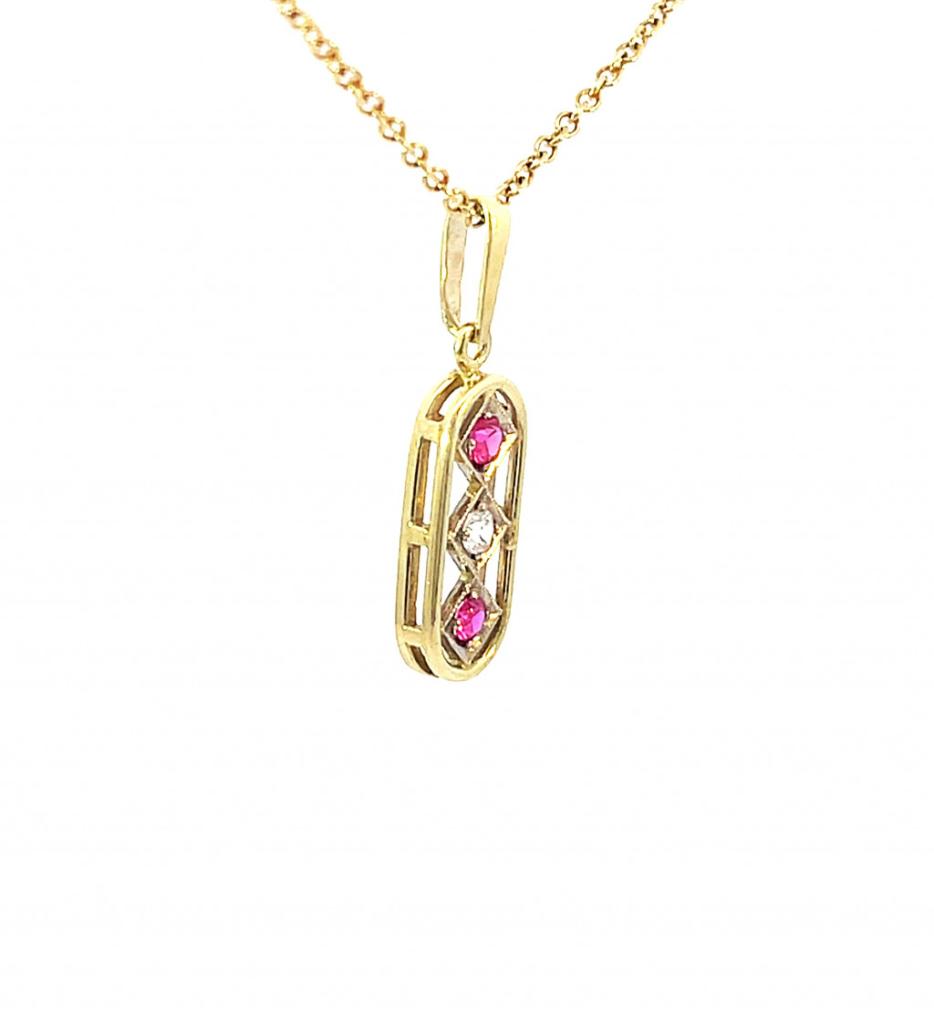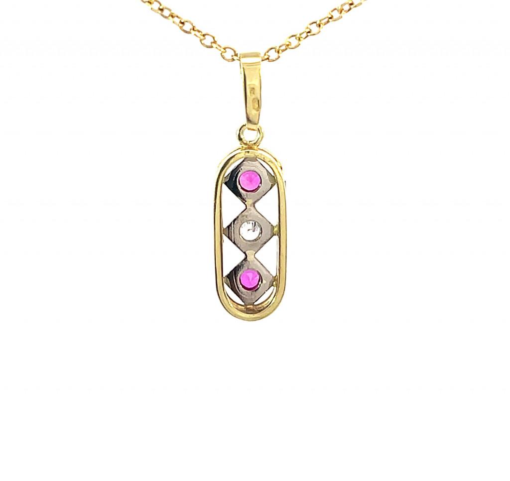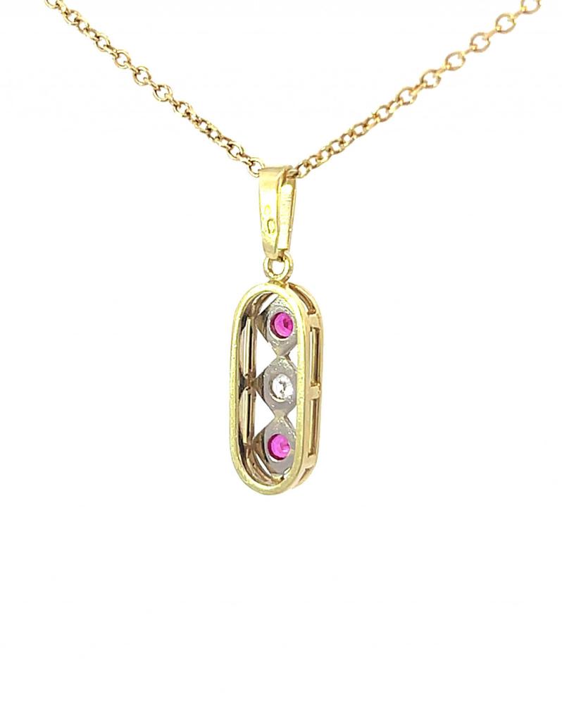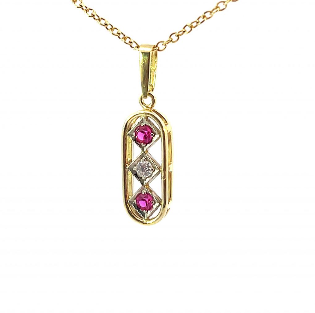 Přívěs z kombinace žlutého a bílého zlata o ryzosti 585/1000, punc labuť. Váha 1,51 g, výška včetně očka 26 mm, v nejširším bodě 7 mm. Kameny jsou syntetické. Řetízek není součástí nabídky.