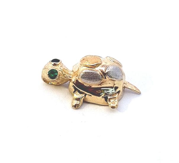 Přívěs z kombinace žlutého a bílého zlata o ryzosti 585/1000, punc labuť. Váha 2,16 g, výška včetně očka 17,5 mm, v nejširším bodě 11 mm. Kameny jsou syntetické.
