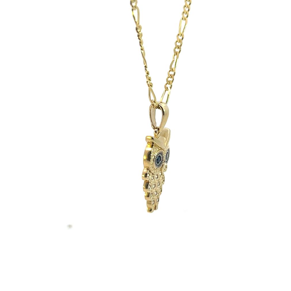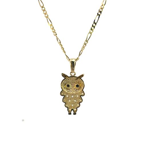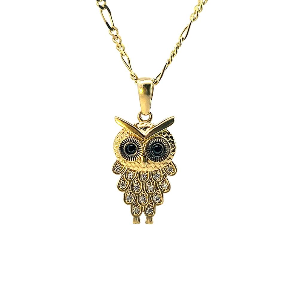 Zlatý přívěs se zirkony a onyxy, sovička