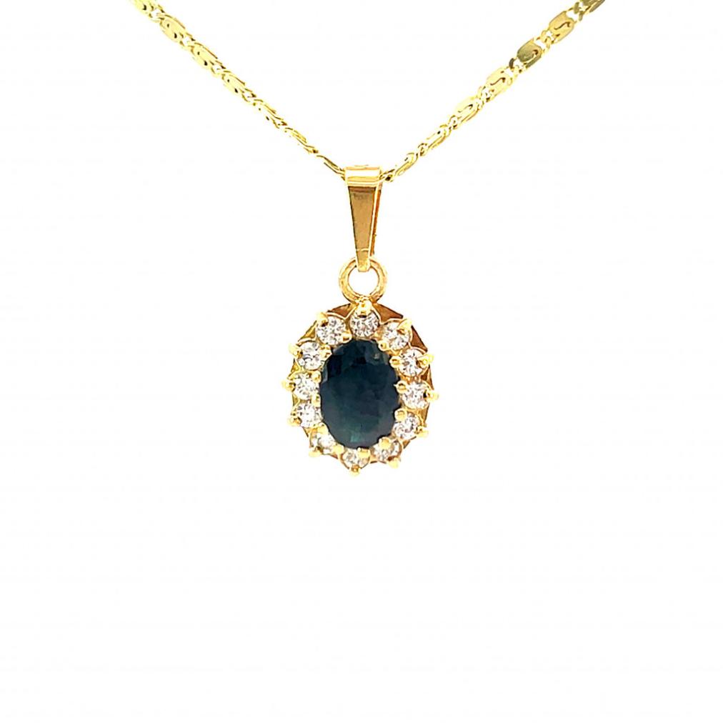 Zlatý přívěs se zirkony a safírem
