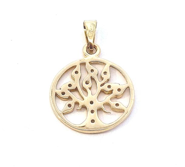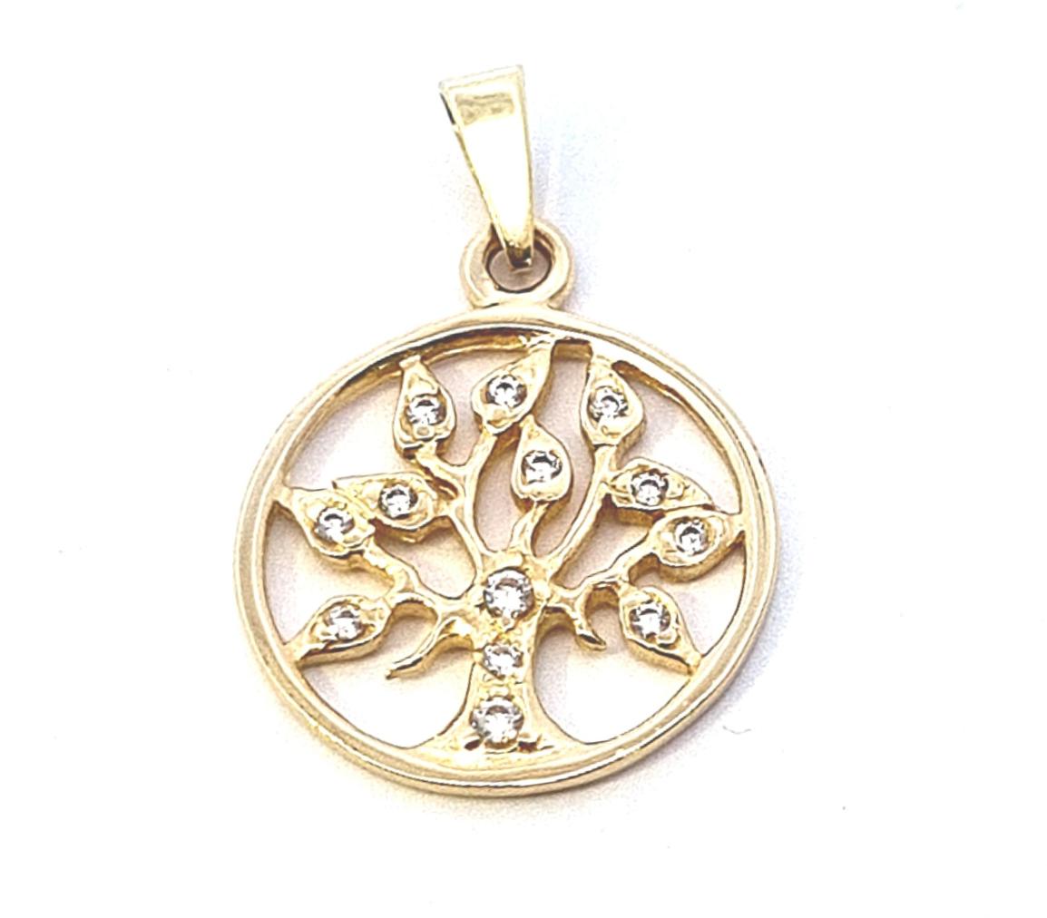 Zlatý přívěs o ryzosti 585/1000, punc labuť. Váha 1,04 g, výška včetně očka 21,5 mm, průměr ozdoby 14 mm. Kameny jsou syntetické.