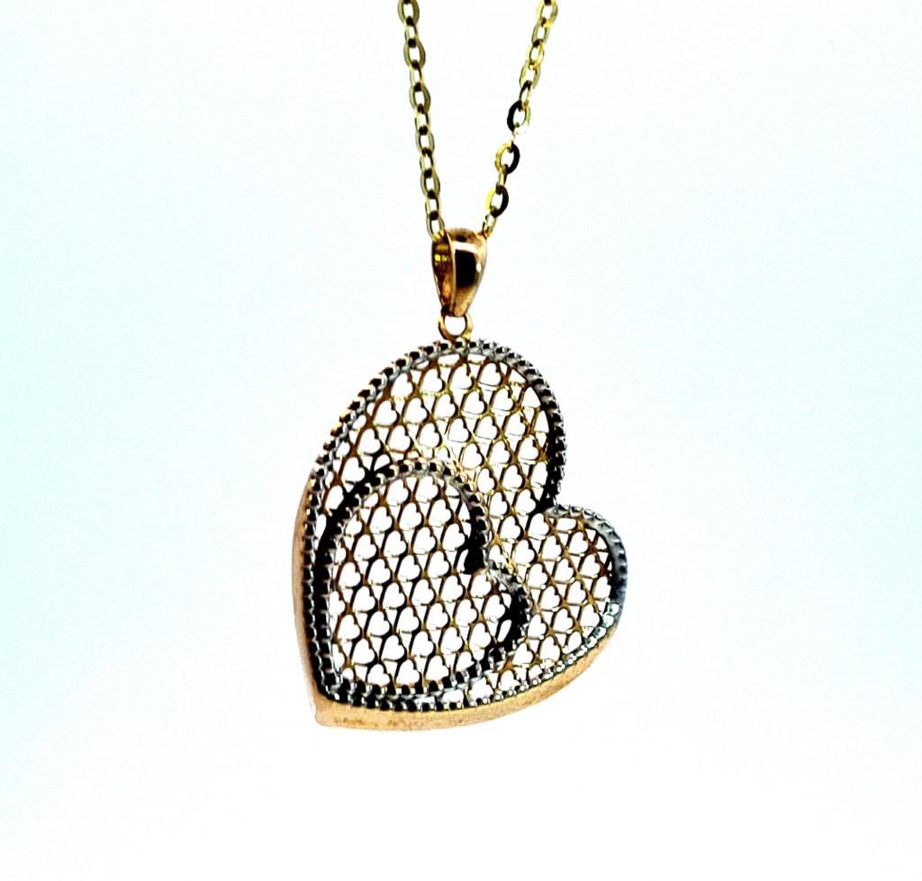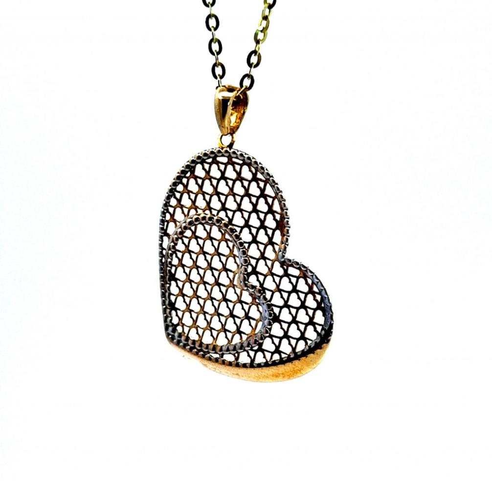 Přívěs z kombinace žlutého a bílého zlata o ryzosti 585/1000, punc labuť. Váha 1,40 g, výška včetně očka 35 mm, v nejširším bodě 28,5 mm. Řetízek není součástí nabídky.