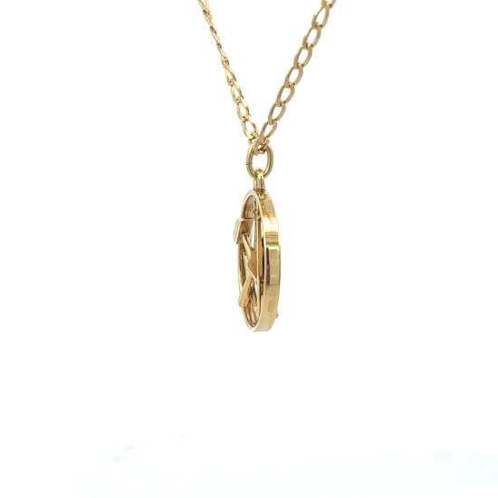 Zlatý přívěs o ryzosti 585/1000, punc labuť. Váha 3,91 g, výška včetně očka 27 mm, průměr 21 mm. Řetízek není součástí nabídky.