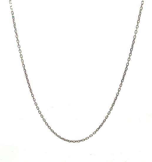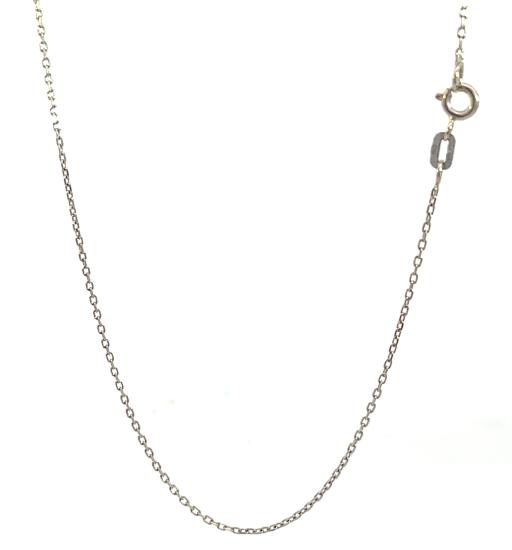Řetízek z bílého zlata o ryzosti 585/1000, punc labuť. Váha 1,88 g, délka 48 cm, v nejširším bodě 1 mm.
