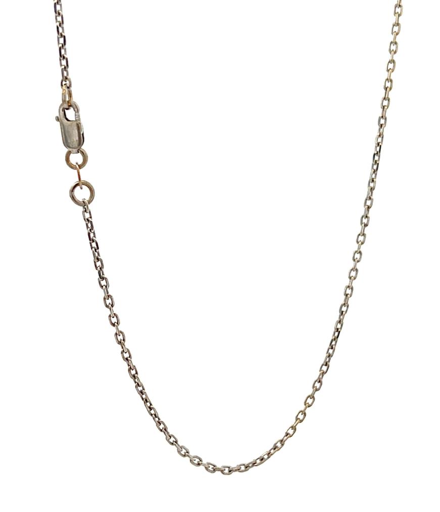 Řetízek z bílého zlata o ryzosti 585/1000, punc labuť. Váha 3,90 g, délka 45,5 cm, v nejširším bodě 2 mm.