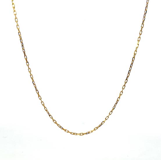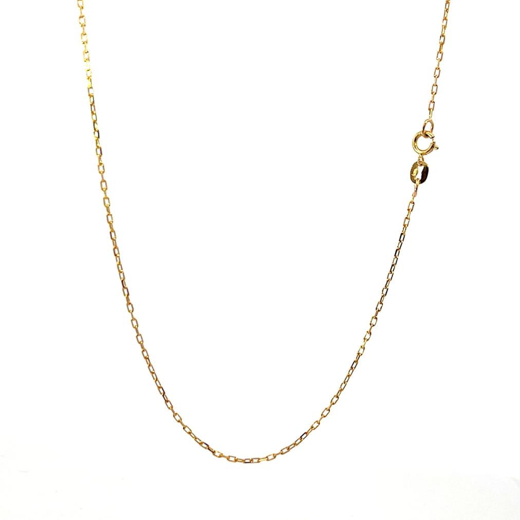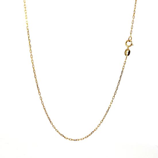 Řetízek z růžovho zlata o ryzosti 585/1000, punc labuť. Váha 1,40 g, délka 45 cm, v nejširším bodě 1 mm.