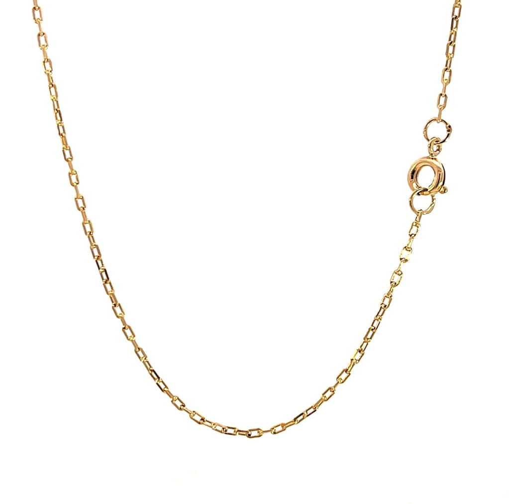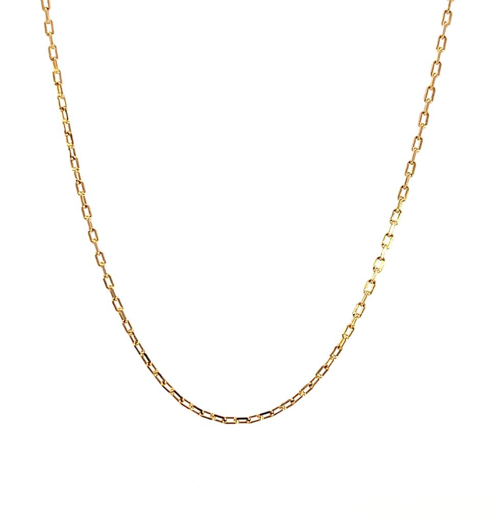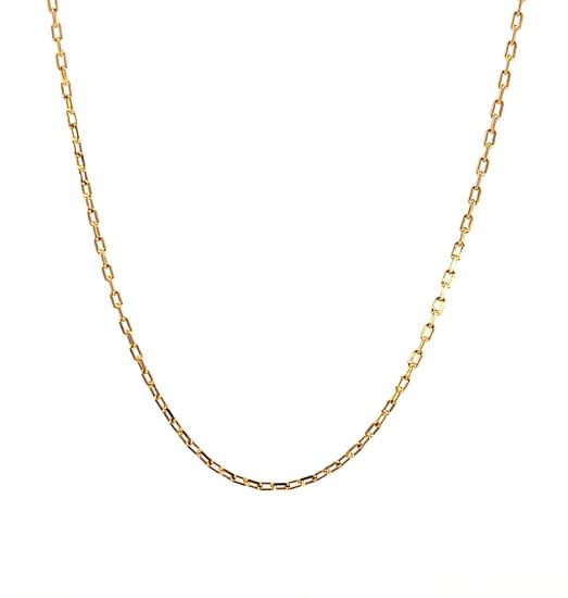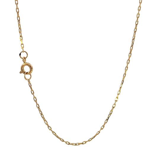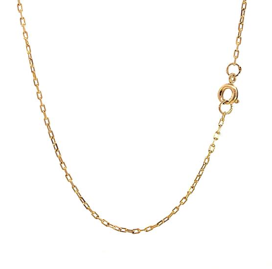 Řetízek z růžového zlata o ryzosti 585/1000, punc čejka. Váha 3,33 g, délka 50 cm, v nejširším bodě 1,5 mm.