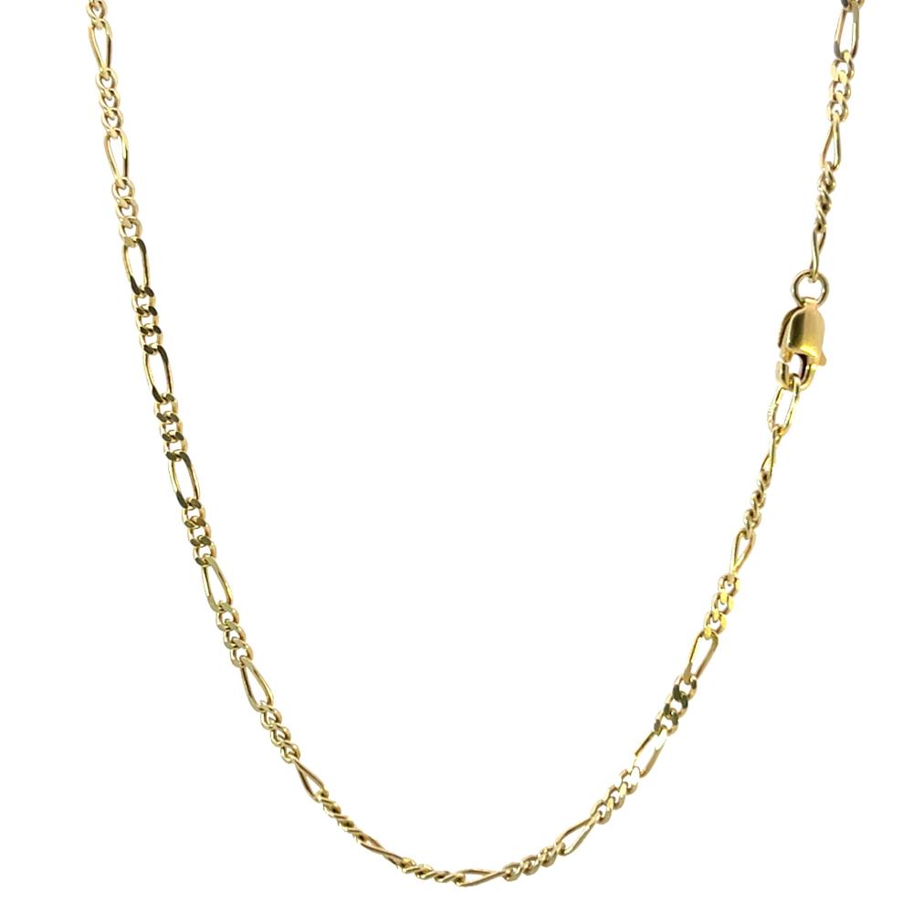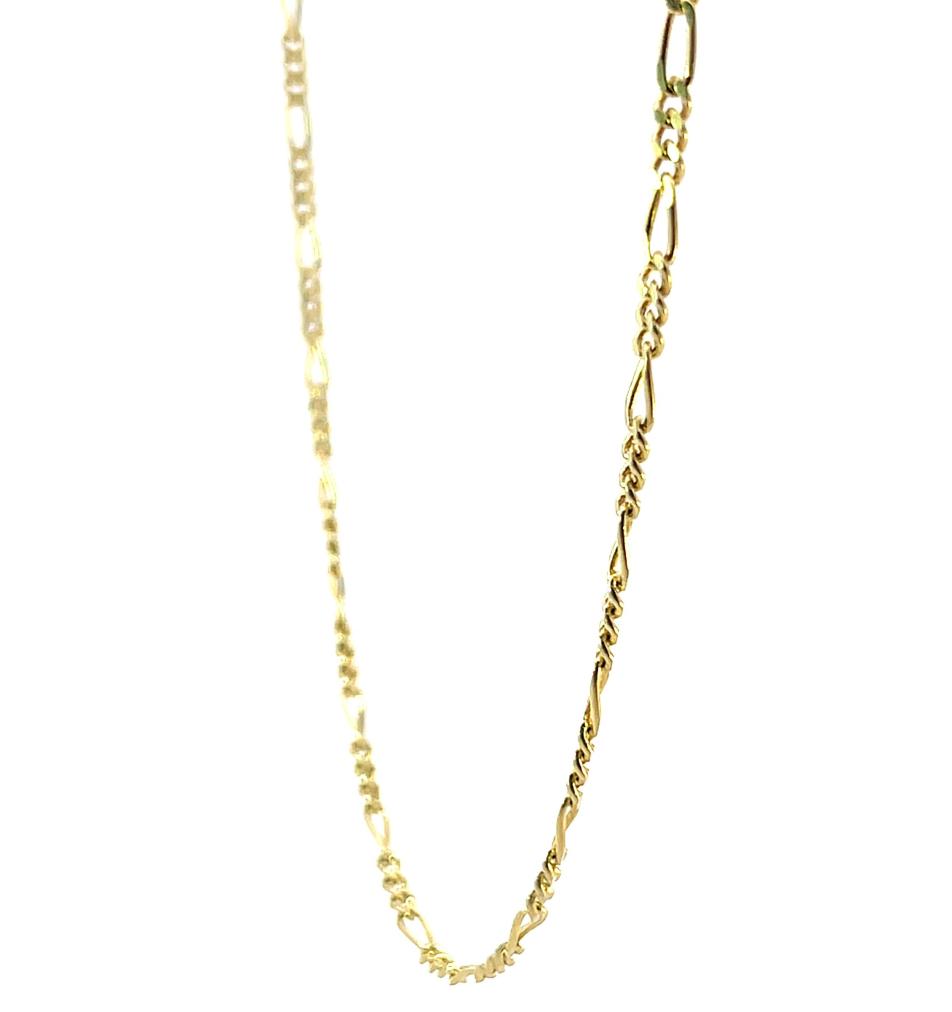 Zlatý řetízek o ryzosti 585/1000, punc labuť. Váha 6,88 g, délka 55 cm, v nejširším bodě 2 mm.