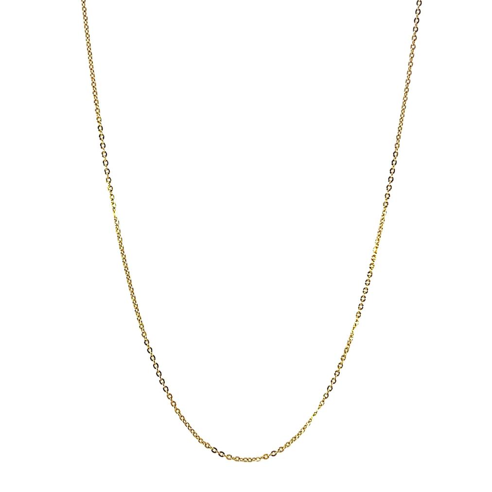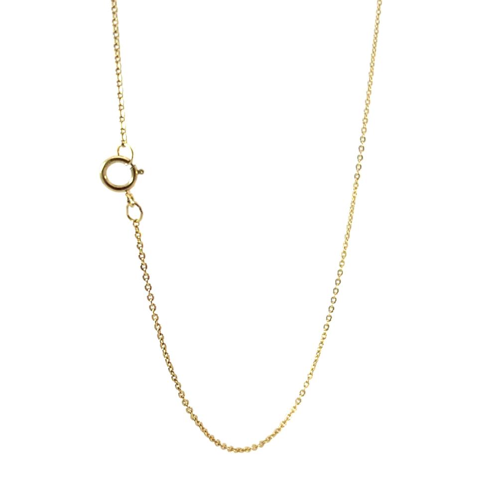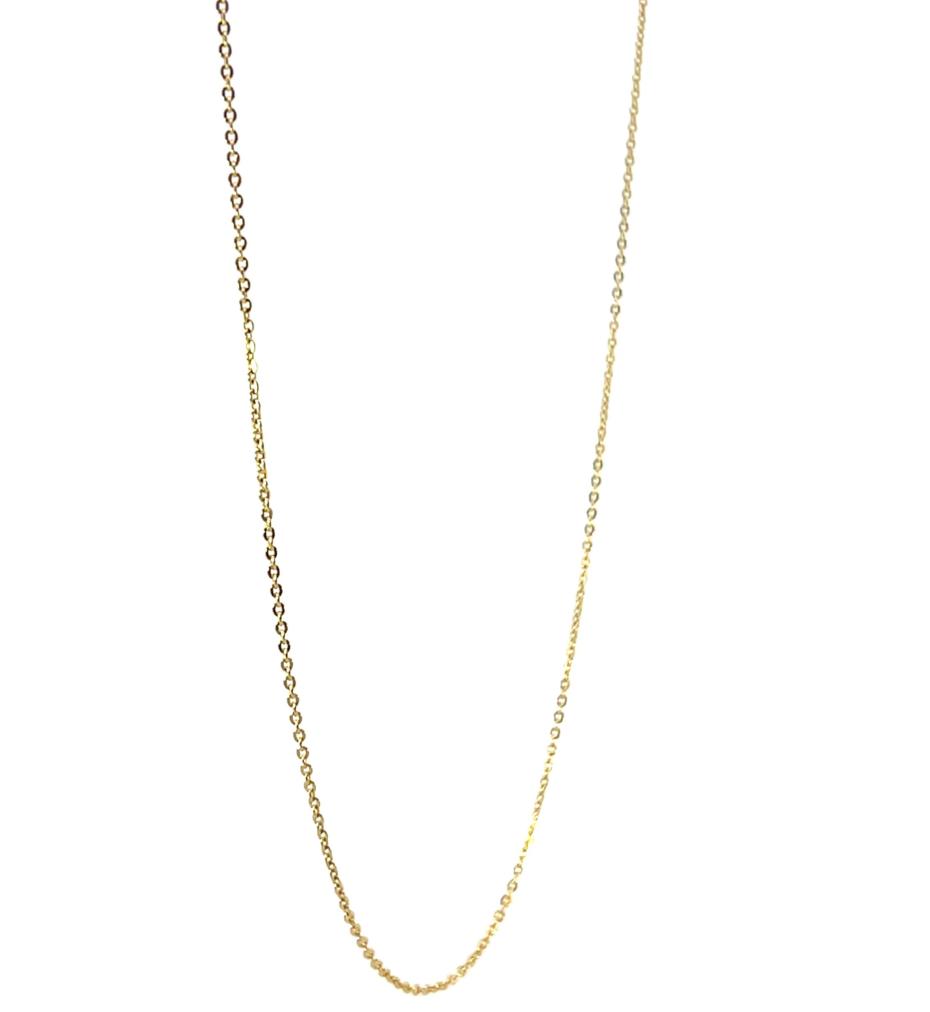 Zlatý řetízek o ryzosti 585/1000, punc labuť. Váha 1,36 g, délka 35 cm, šířka 1 mm.