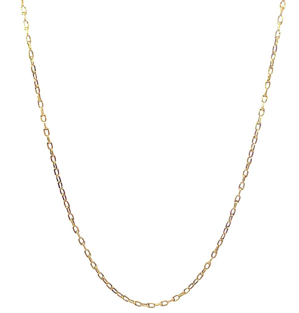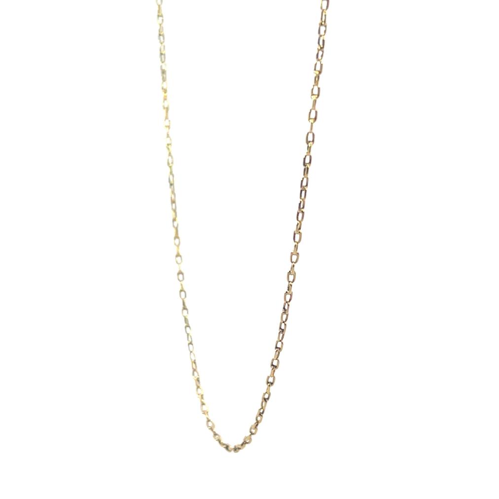 Zlatý řetízek o ryzosti 585/1000, punc čejka. Váha 1,87 g, délka 54 cm, šířka 1,5 mm.