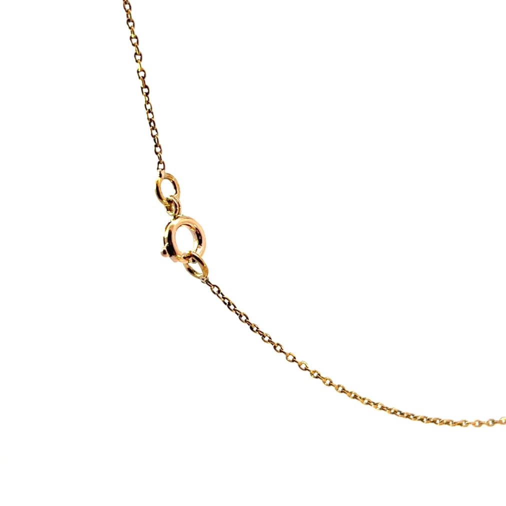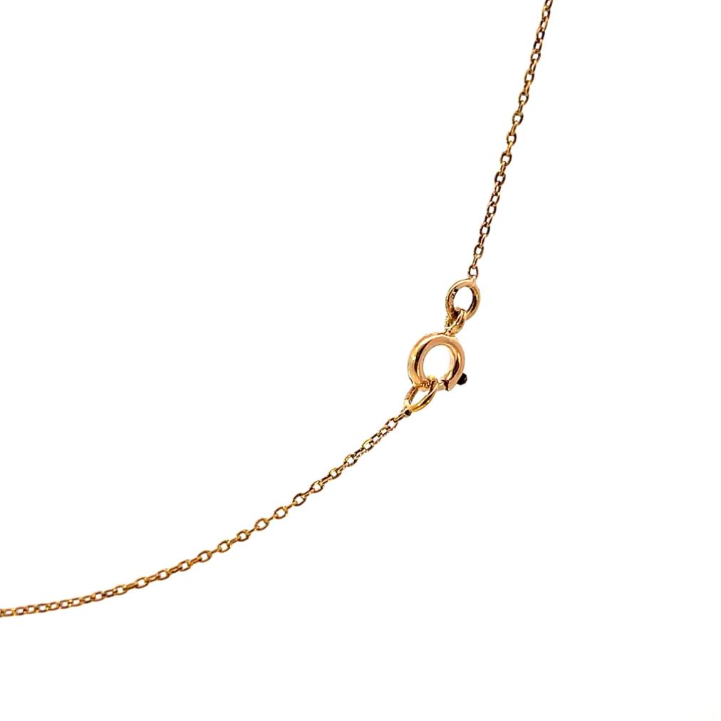 Kolier z kombinace žlutého a růžového zlata o ryzosti 580/1000, punc liška. Váha 6,12 g, délka řetízku 45 cm, výška přívěsu 53 mm, v nejširším bodě 36 mm. Kameny jsou syntetické.