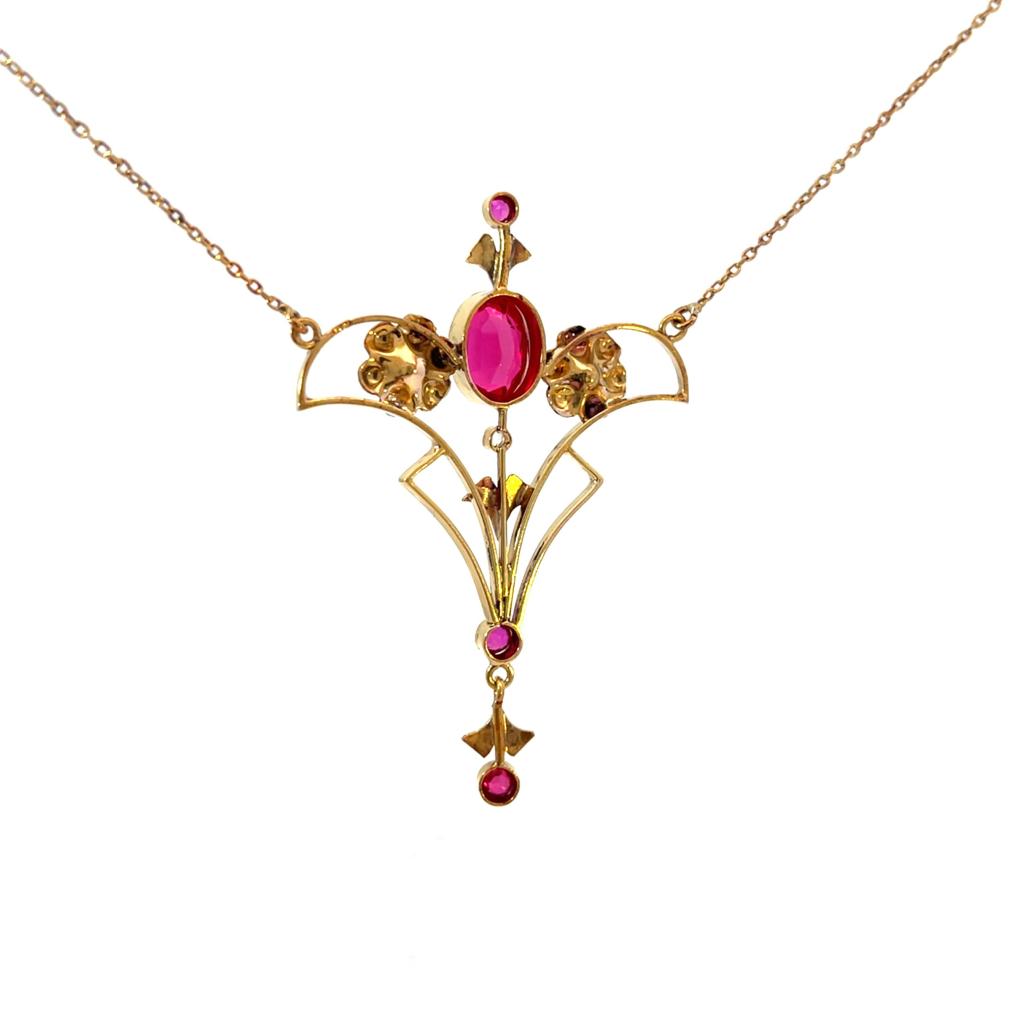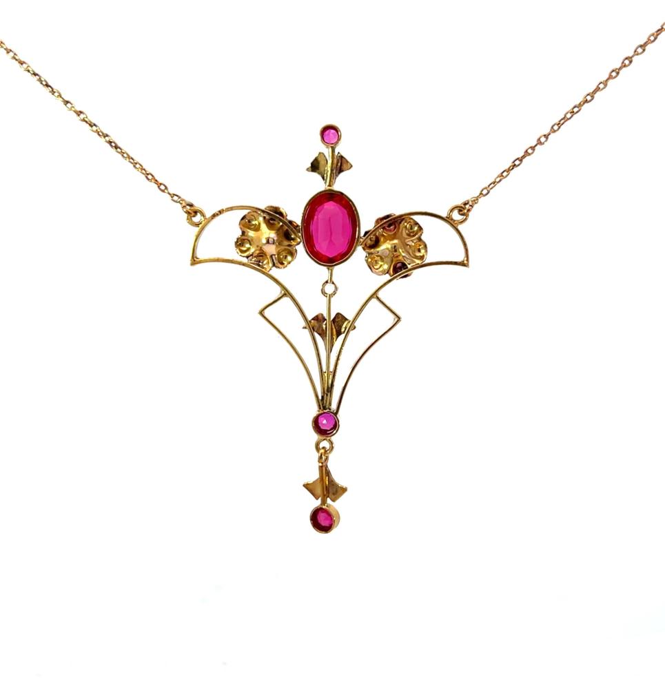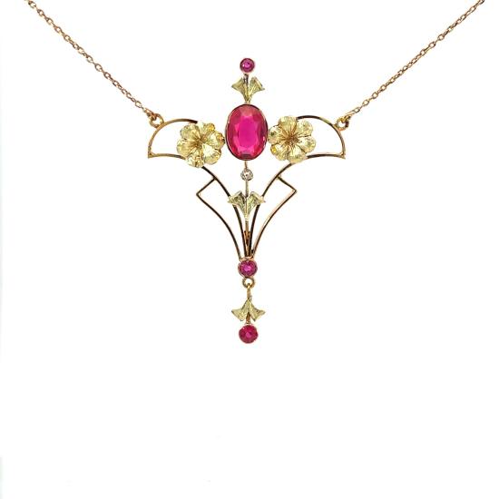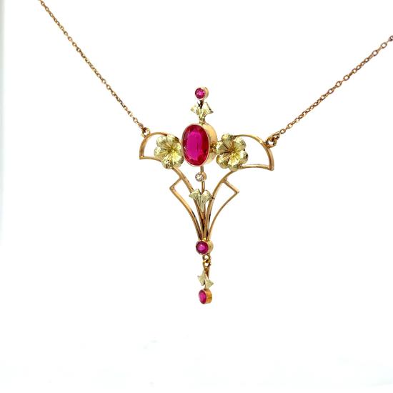 Starožitný zlatý kolier s rubíny a leukosafírem, Rakousko-Uhersko