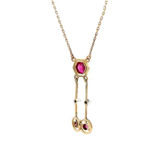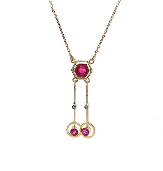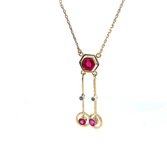 Starožitný zlatý kolier s rubíny a leukosafíry
