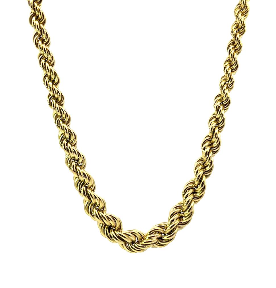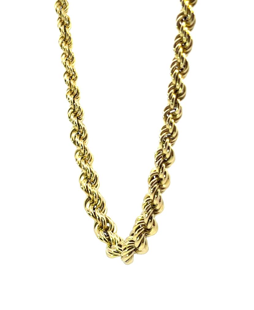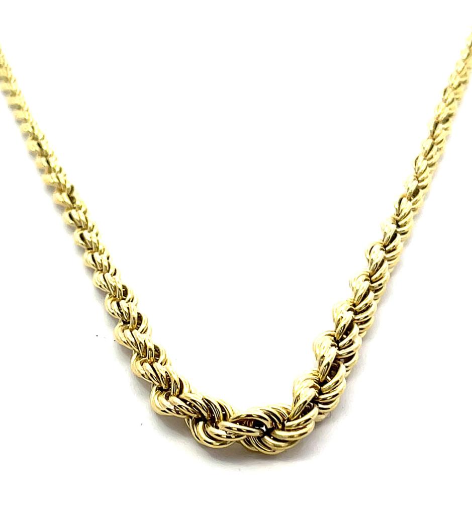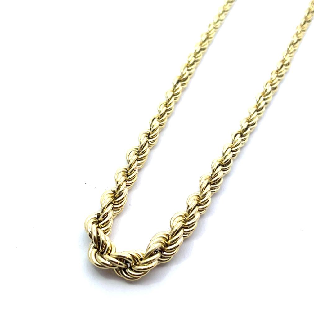 Zlatý řetízek o ryzosti 585/1000, punc lvíček. Váha 13,85 g, délka 45,7 cm, v nejširším bodě 7 mm.