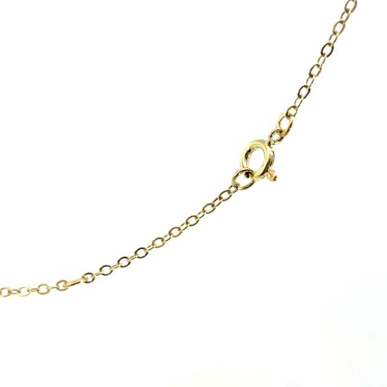 Zlatý kolier o ryzosti 585/1000, punc labuť. Váha 7,78 g, délka řetízku je nastavitelná - 42 cm nebo 45 cm, šířka řetízku - 2 mm, výška přívěsu 25 mm, v nejširším bodě přívěs 73 mm.