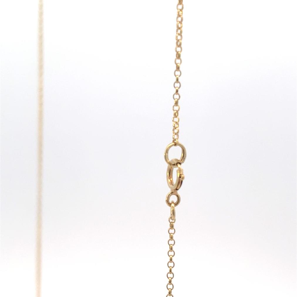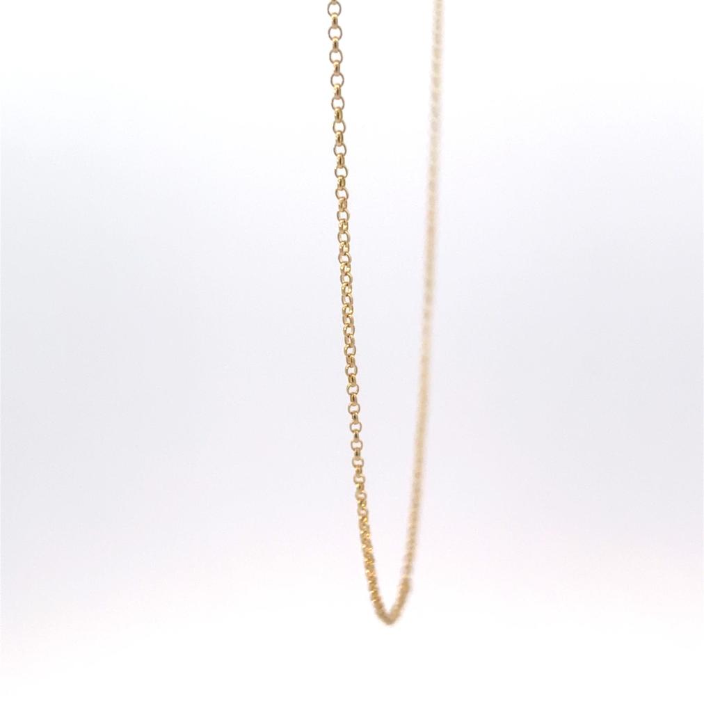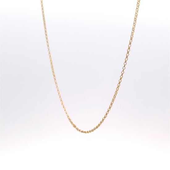 Zlatý řetízek o ryzosti 585/1000, punc labuť. Váha 1,48 g, délka 61,5 cm, v nejširším bodě 1 mm.