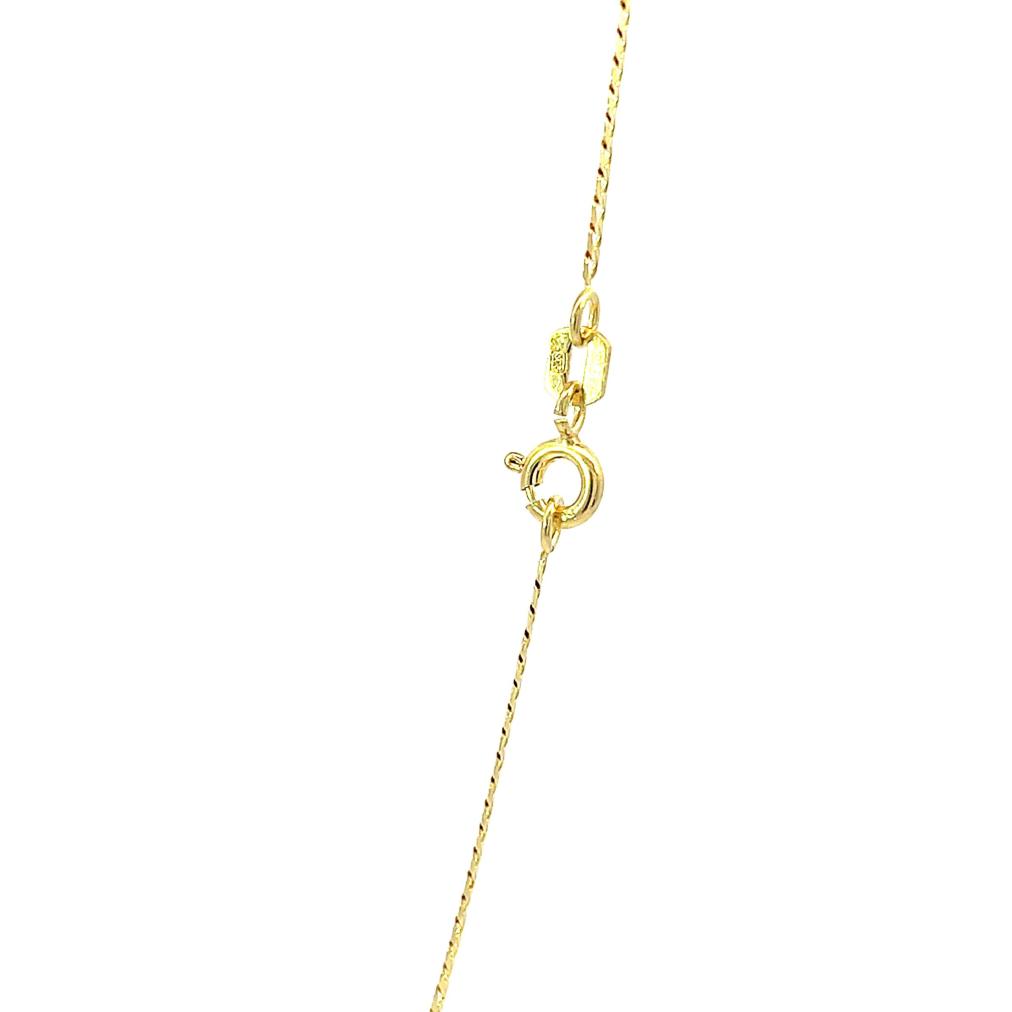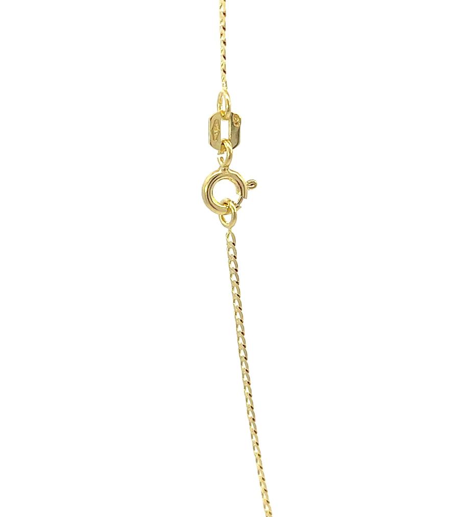 Zlatý řetízek o ryzosti 585/1000, punc labuť. Váha 1,80 g, délka 46,5 cm, v nejširším bodě 1,5 mm.
