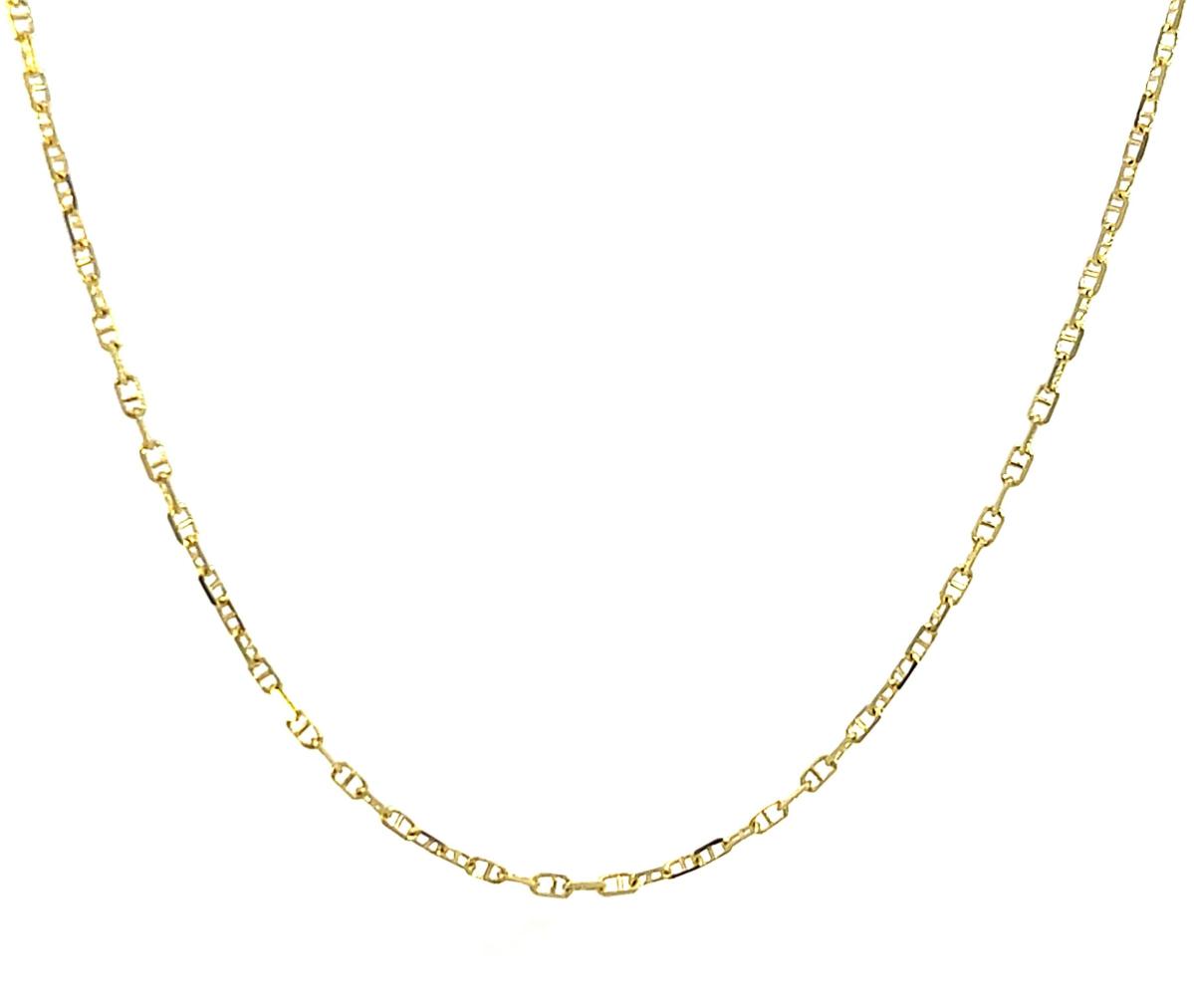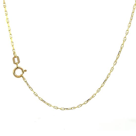 Zlatý řetízek o ryzosti 585/1000, punc labuť. Váha 1,91 g, délka 50,5 cm, v nejširším bodě 1 mm.