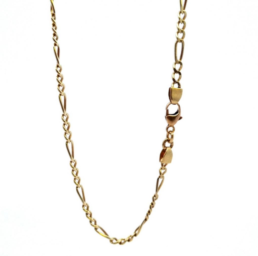 Řetízek ze žlutého zlata o ryzosti 585/1000 s puncem labutě. Jeho váha je 10,95 g, délka 63 cm a v nejširším bodě měří 2 mm.