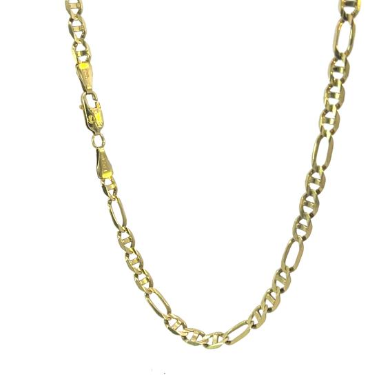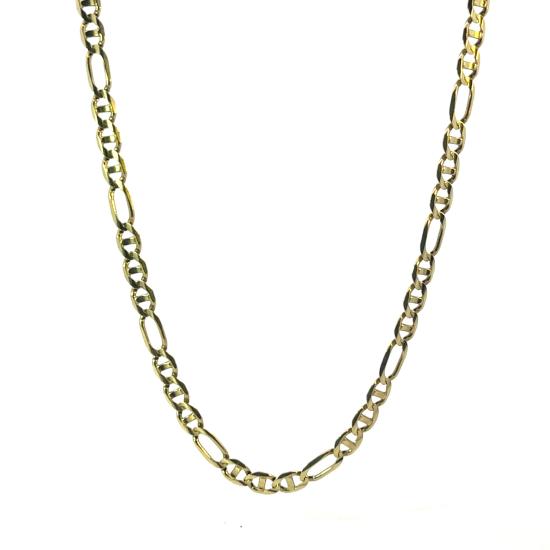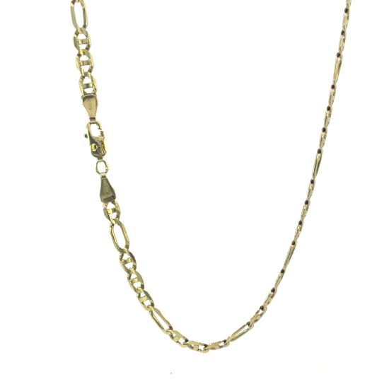 Zlatý řetízek o ryzosti 585/1000, punc labuť. Váha 12,78 g, délka 56 cm, v nejširším bodě 4 mm.