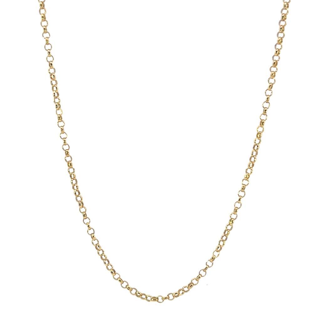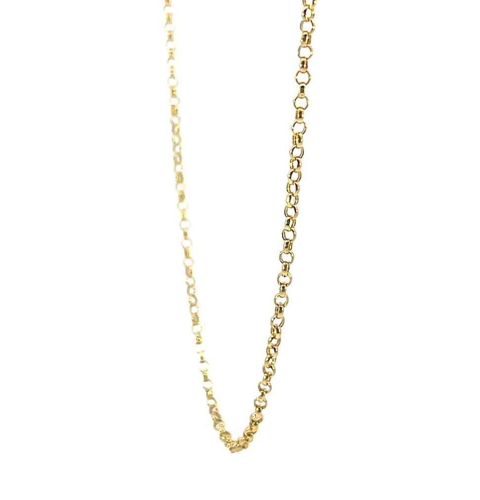 Zlatý řetízek o ryzosti 585/1000, punc labuť. Váha 2,12 g, délka 53 cm, v nejširším bodě 1 mm.