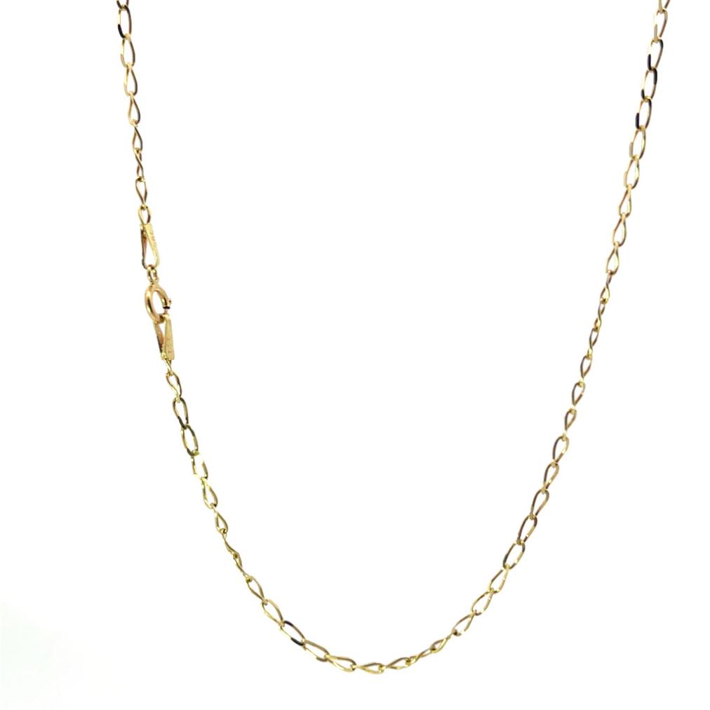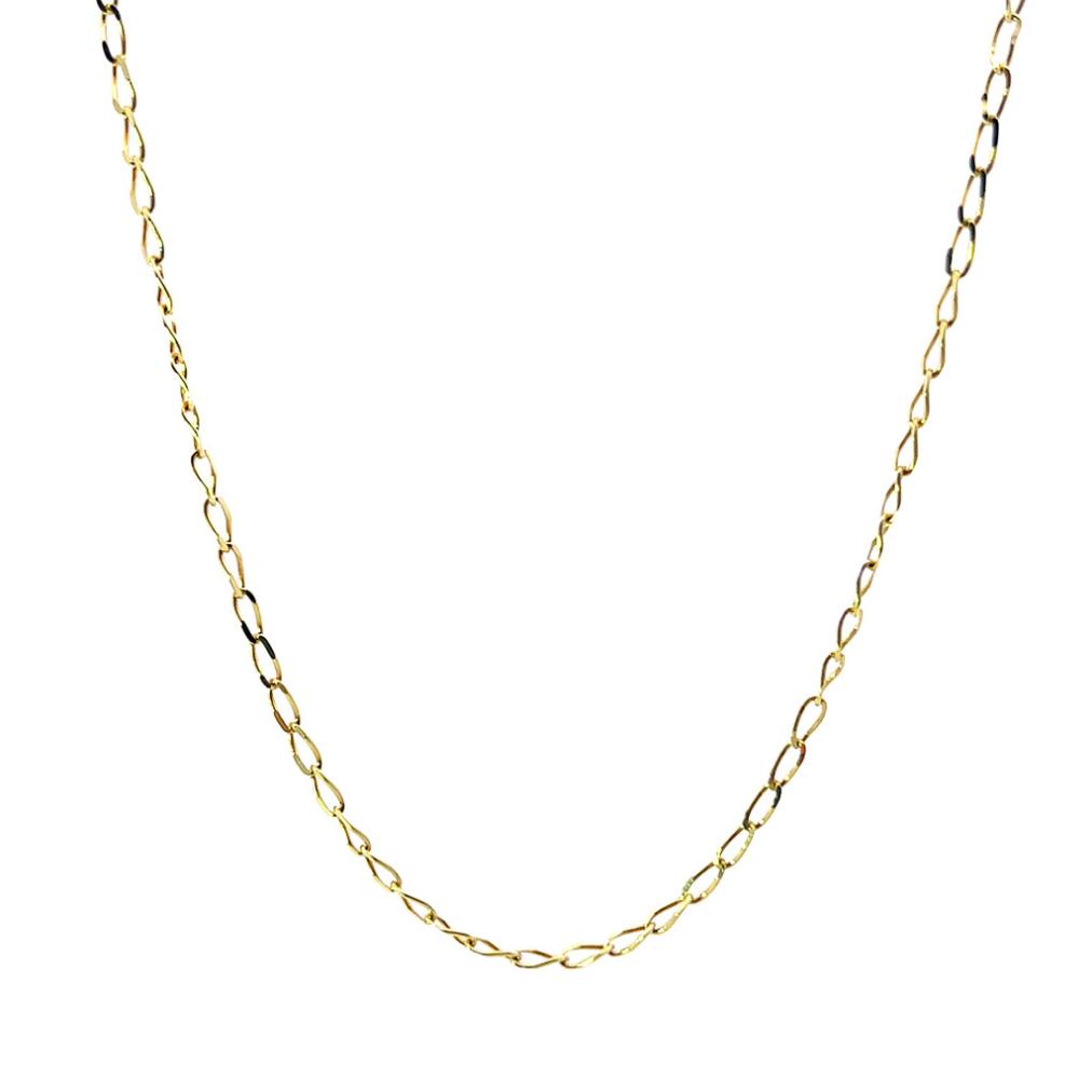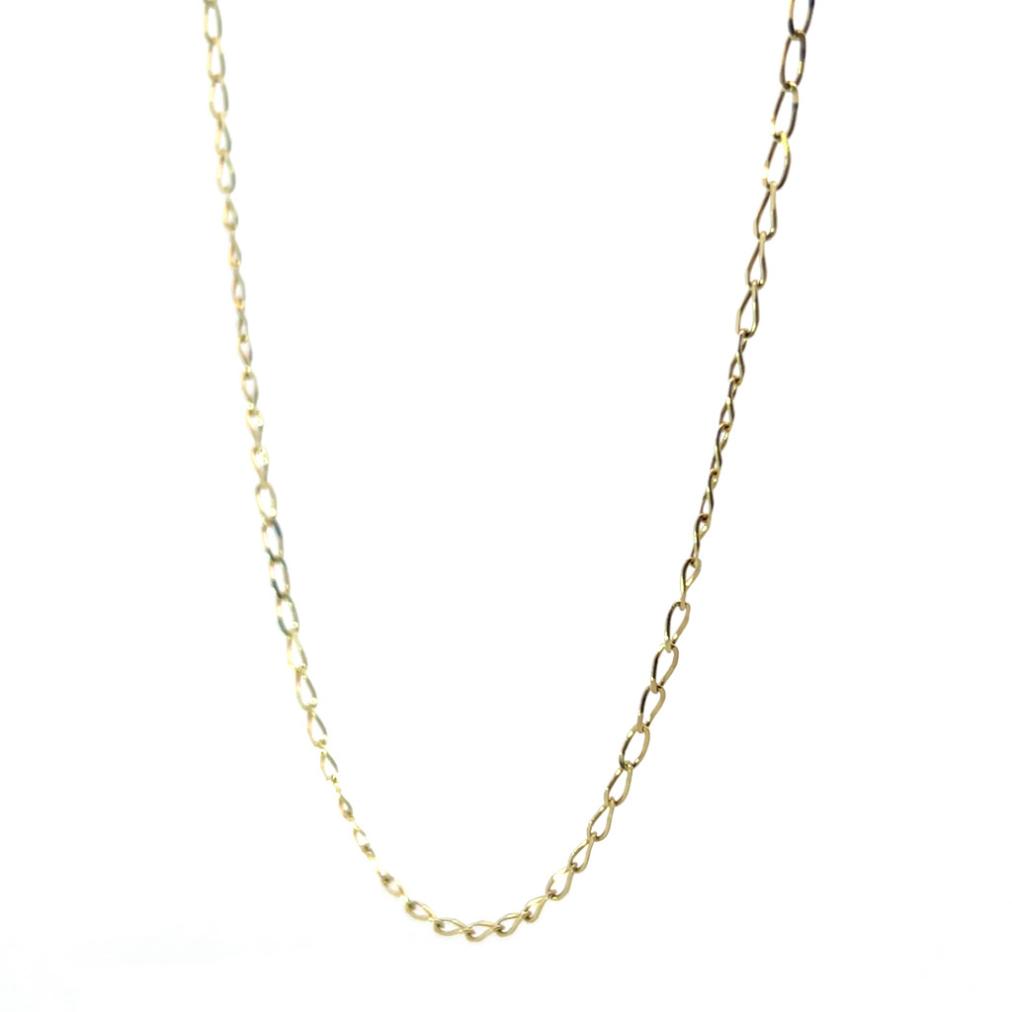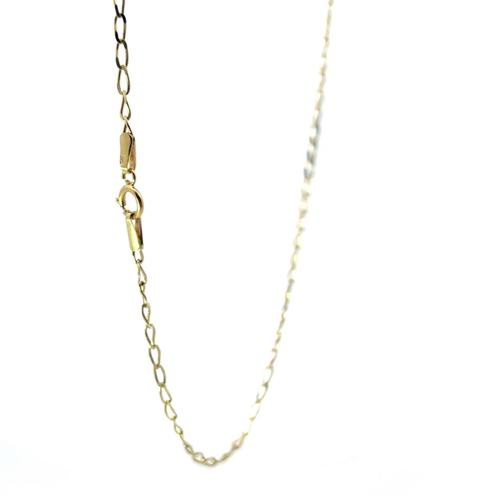 Zlatý řetízek o ryzosti 585/1000, punc labuť. Váha 2,18 g, délka 40 cm, v nejširším bodě 2 mm.