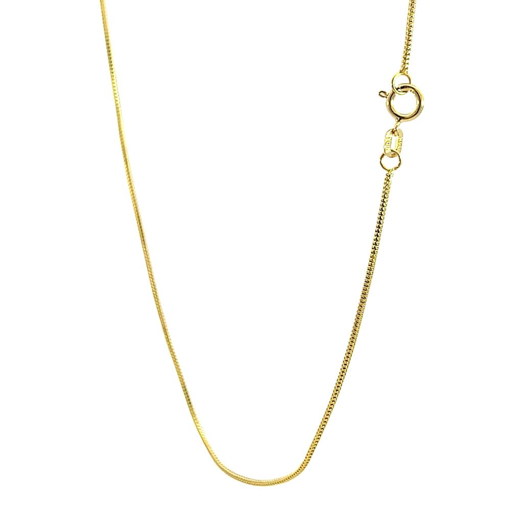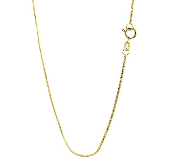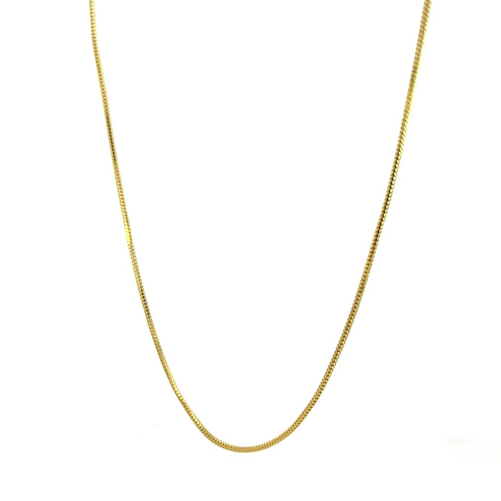 Zlatý řetízek o ryzosti 585/1000, punc labuť. Váha 2,21 g, délka 41,8 cm, v nejširším bodě 1 mm.