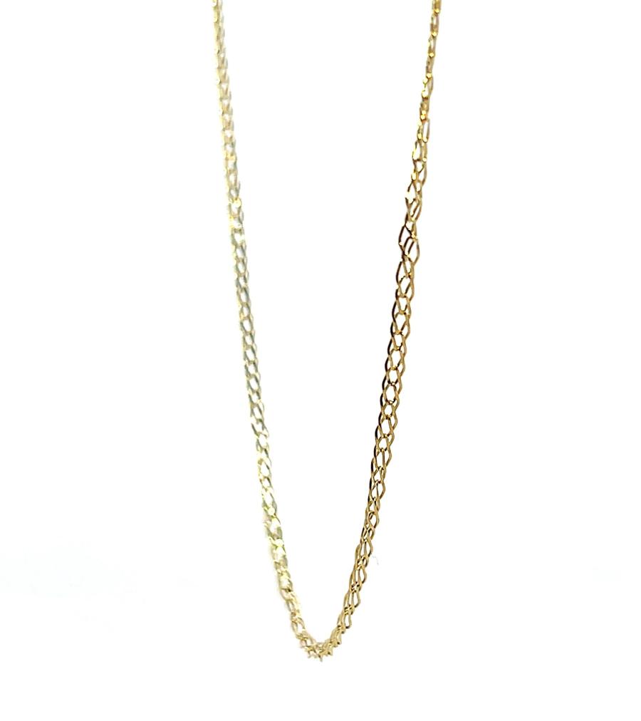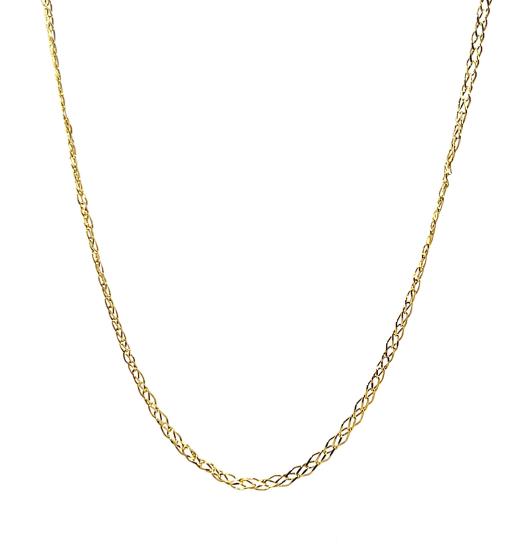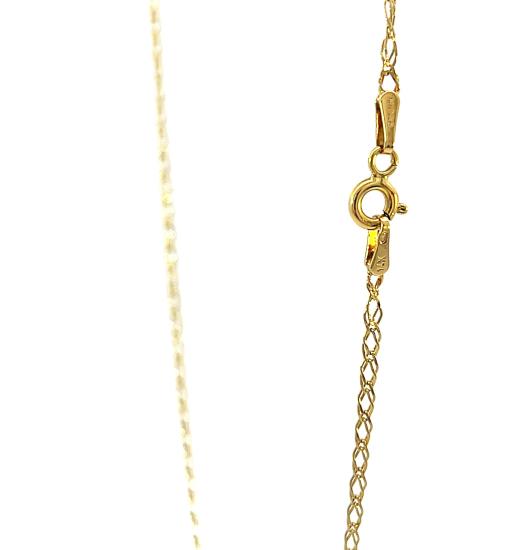 Zlatý řetízek o ryzosti 585/1000, punc labuť. Váha 2,64 g, délka 64 cm, v nejširším bodě 1,5 mm.