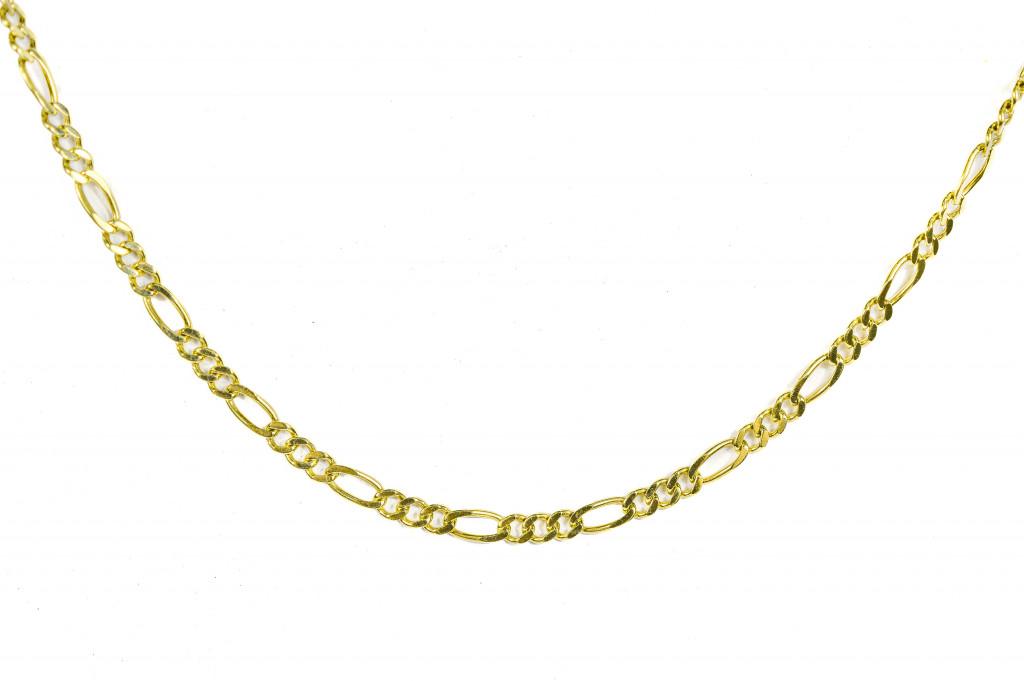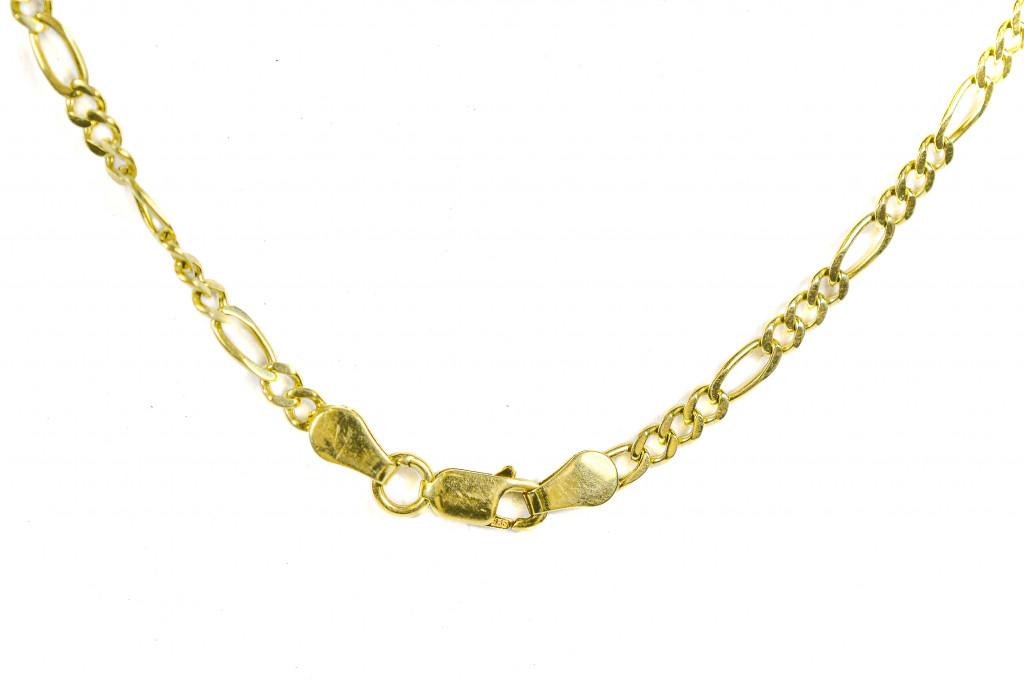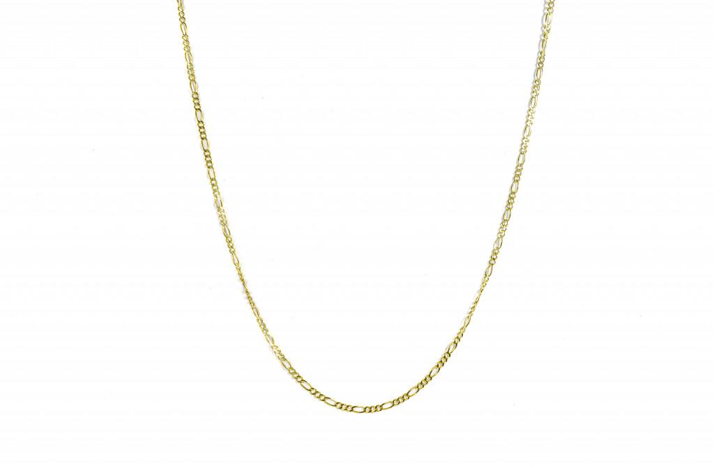 Zlatý řetízek o ryzosti 585/1000, punc labuť. Váha 2,67 g, délka 55 cm, šířka 1,5 mm.