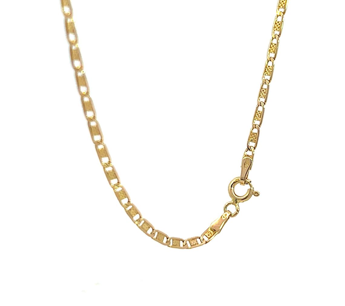 Zlatý řetízek o ryzosti 585/1000, punc labuť. Váha 2,73 g, délka 55,5 cm, v nejširším bodě 2 mm.