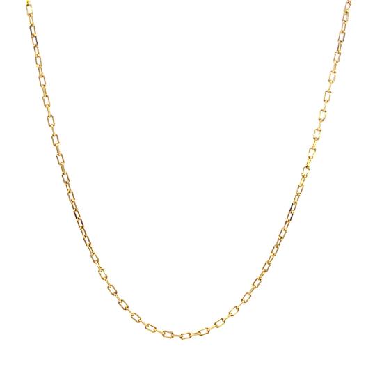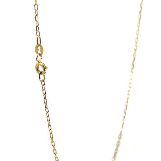 Zlatý řetízek o ryzosti 585/1000, punc labuť. Váha 2,85 g, délka 61,5 cm, v nejširším bodě 1,5 mm.