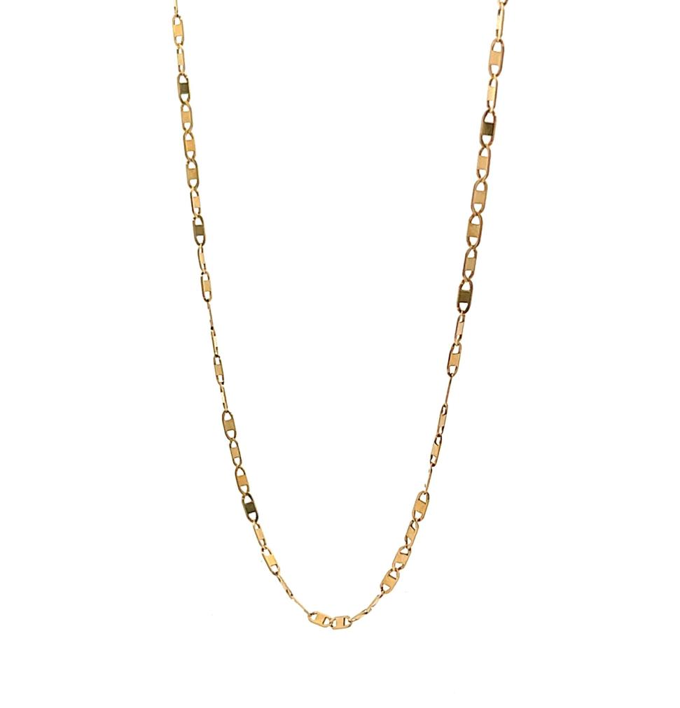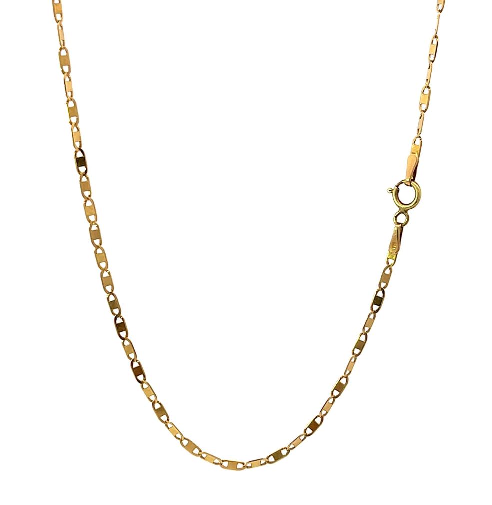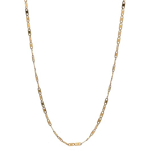 Zlatý řeízek o ryzosti 585/1000, punc labuť. Váha 3,88 g, délka 60,3 cm, v nejširším bodě 2 mm.
