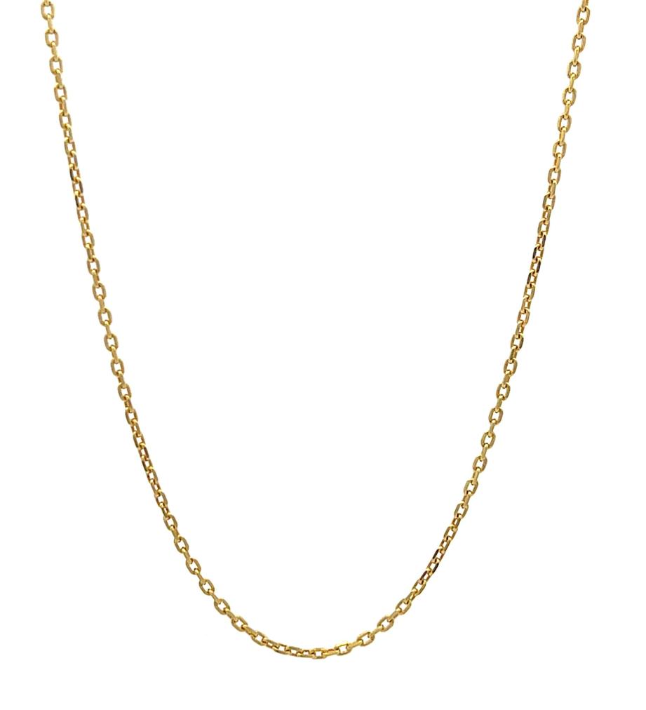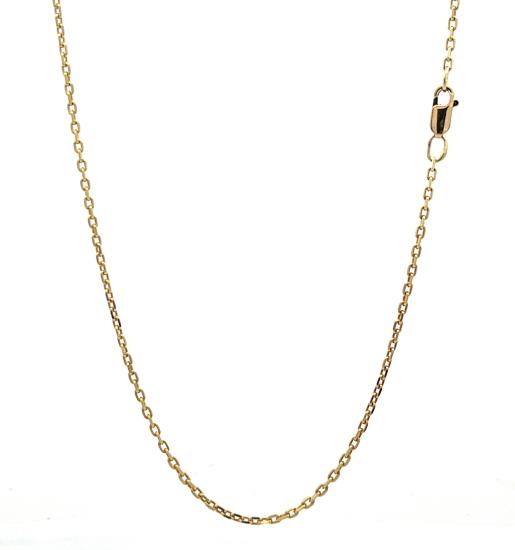 Zlatý řetízek o ryzosti 585/1000, punc labuť. Váha 4,54 g, délka 52 cm, v nejširším bodě 1,5 mm.