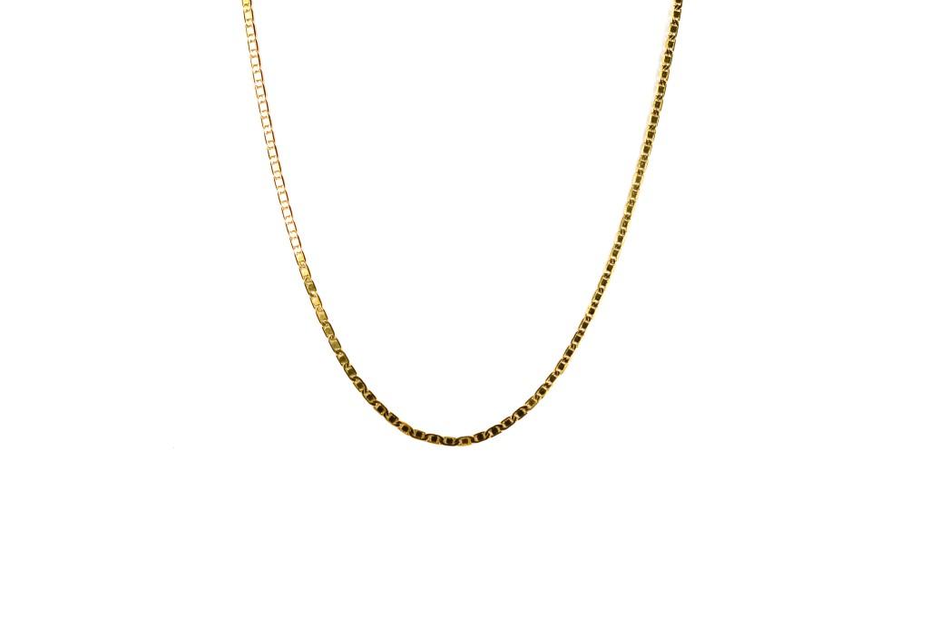 Zlatý řetízek o ryzosti 585/1000, punc labuť, váha 4,69 g, délka 42 cm, šířka 2,5 mm.