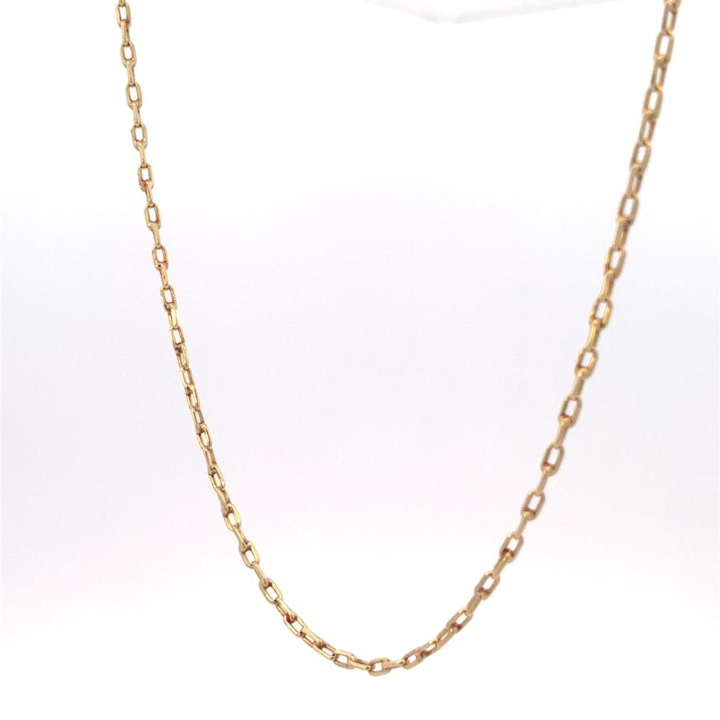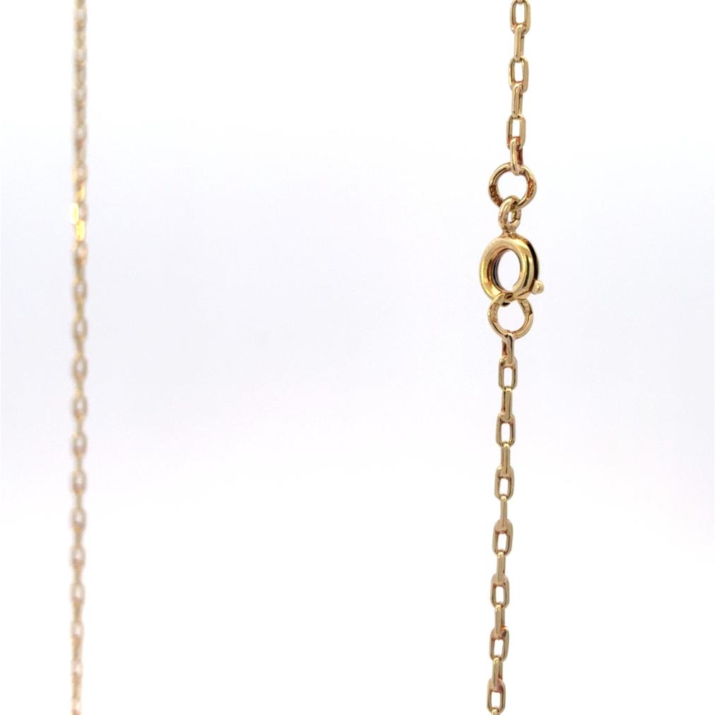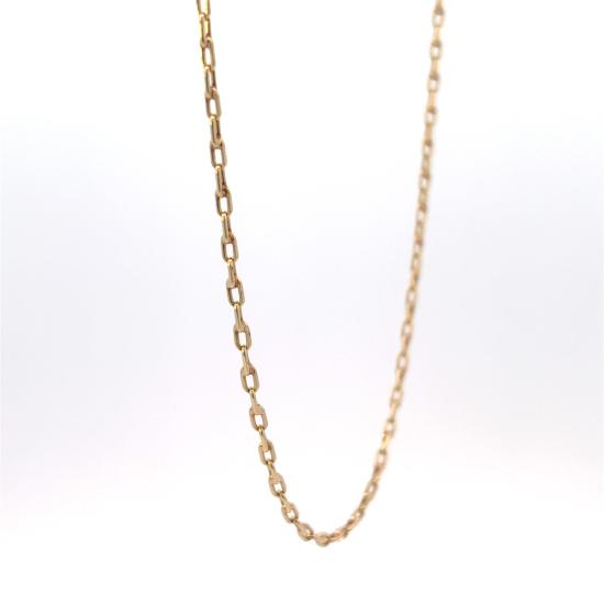Zlatý řetízek o ryzosti 585/1000, punc čejka. Váha 4,70 g, délka 54,5 cm, v nejširším bodě 1,5 mm.