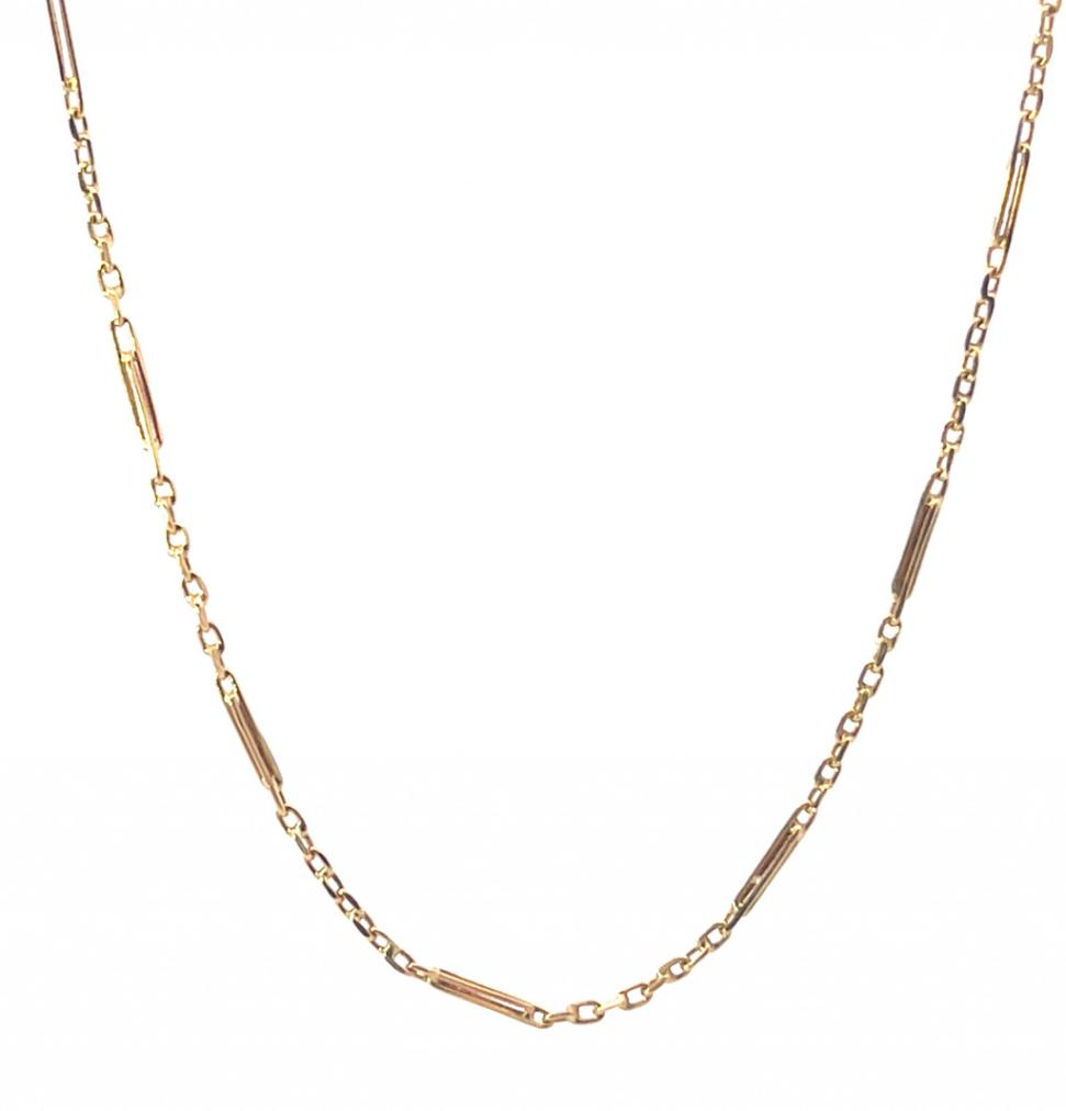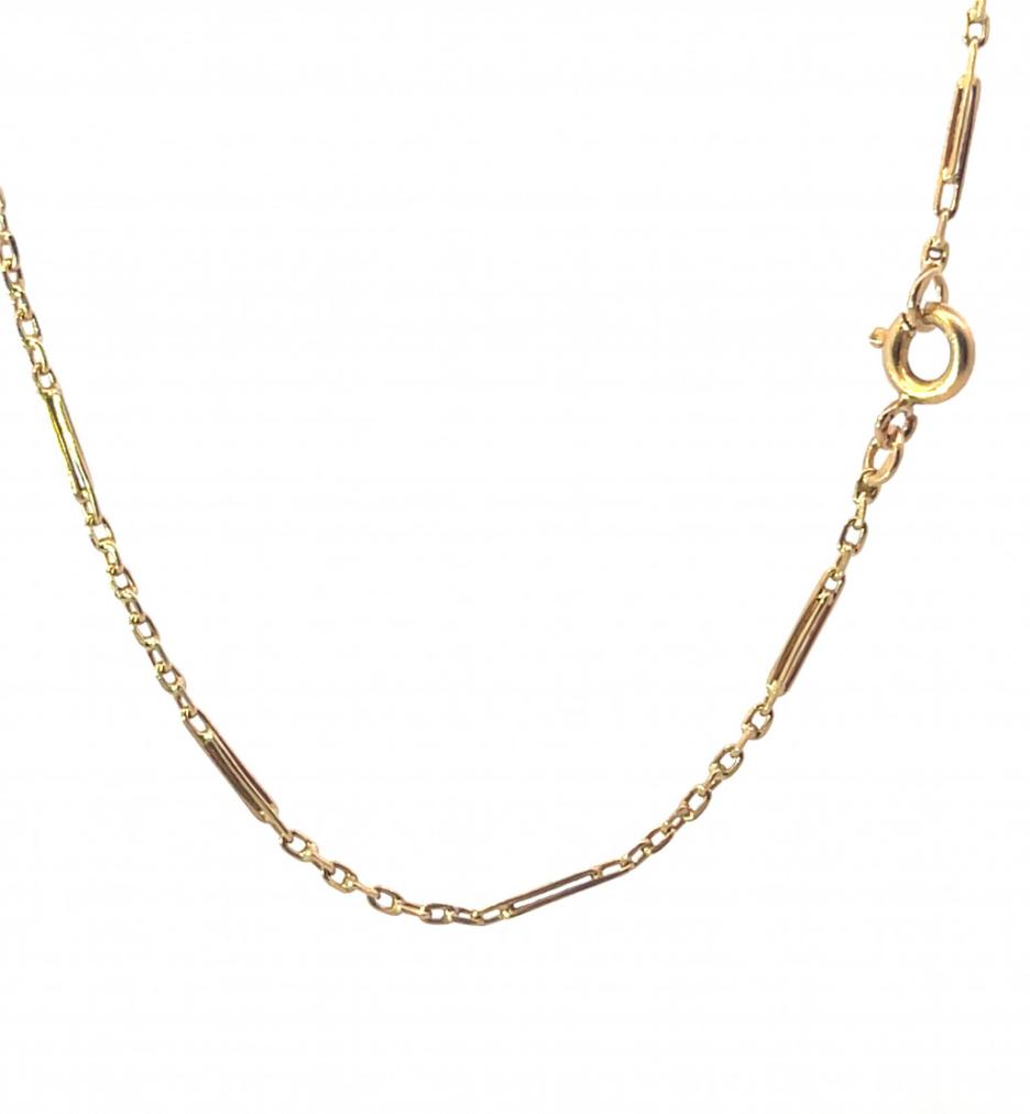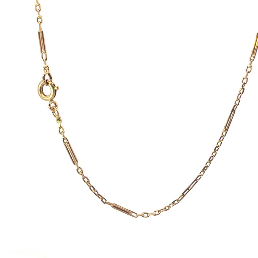 Řetízek z růžového zlata o ryzosti 585/1000, punc čejka. Váha 4,82 g, délka 50 cm, v nejširším bodě 1,75 mm.