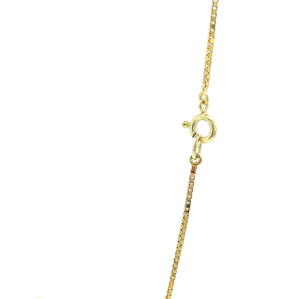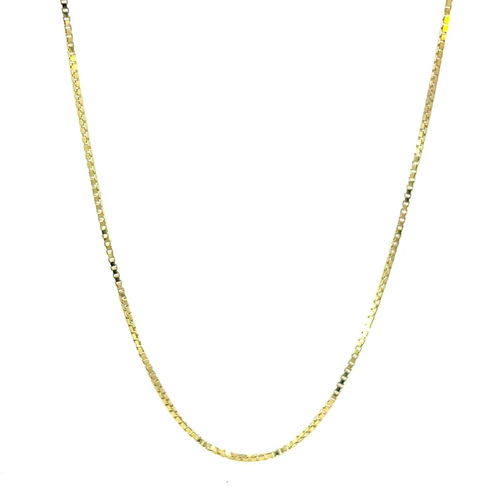 Zlatý řetízek o ryzosti 585/1000, punc čejka. Váha 5,07 g, délka 55,7 cm, v nejširším bodě 1 mm.