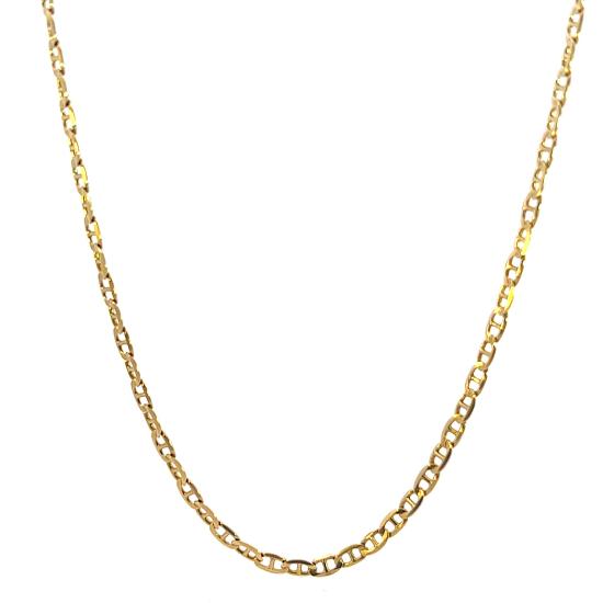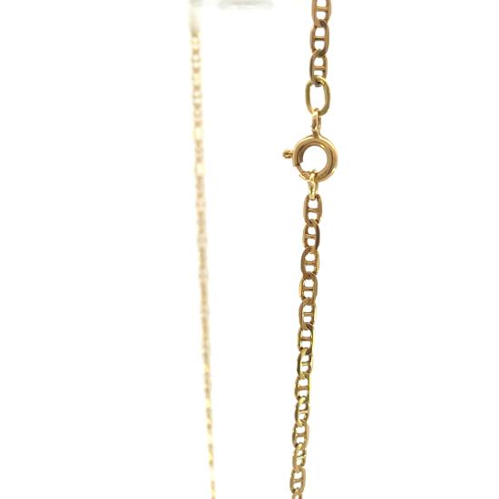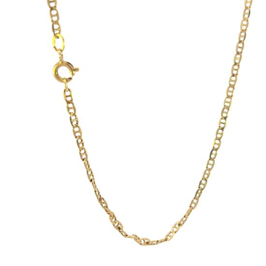Zlatý řetízek o ryzosti 585/1000 s puncem labuť. Délka 54, váha 5,24 g. Šířka oček 2 mm.