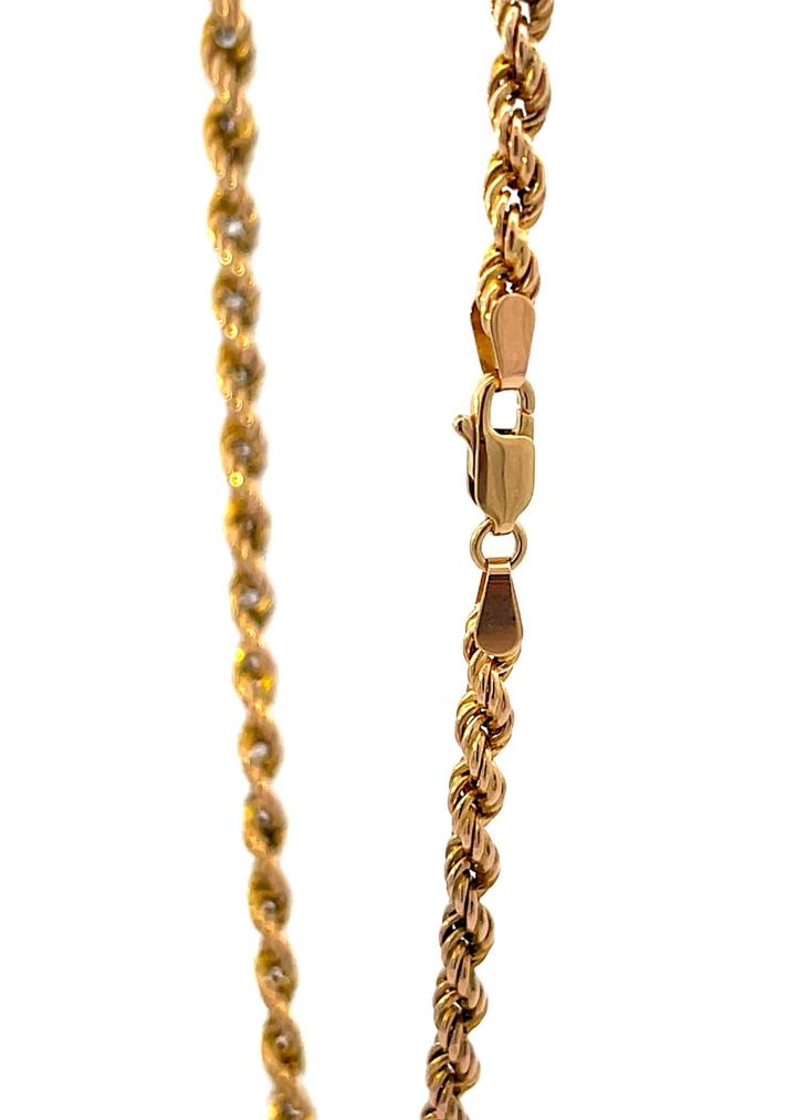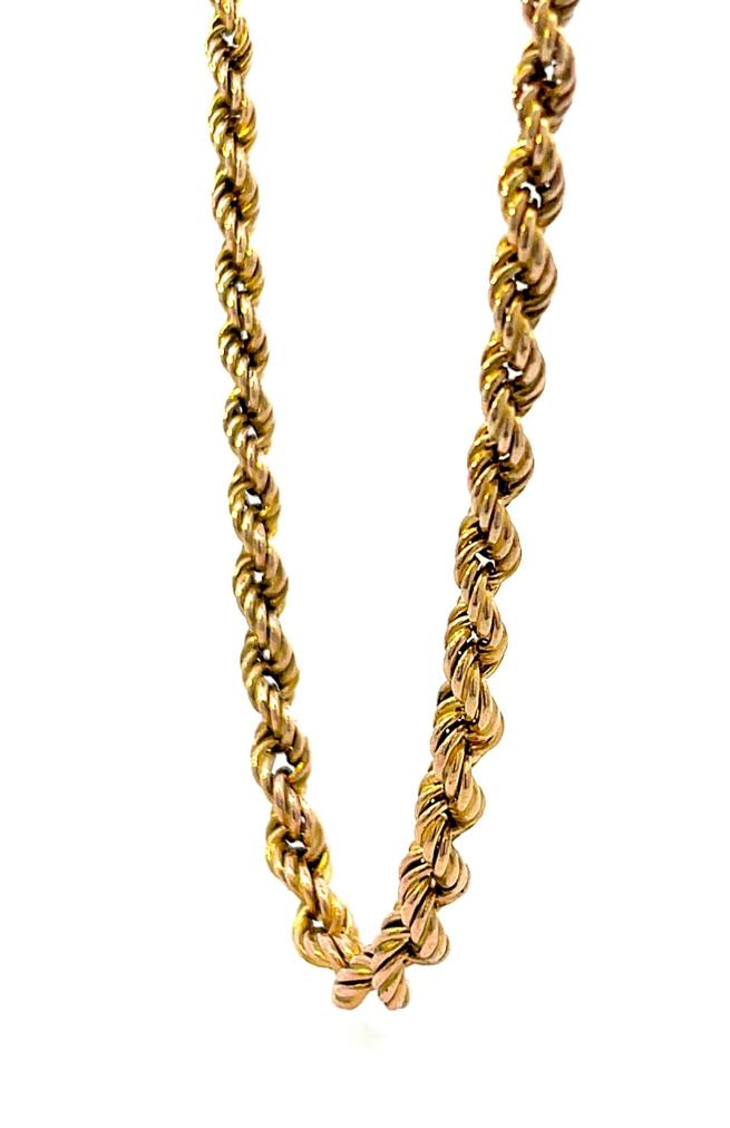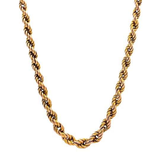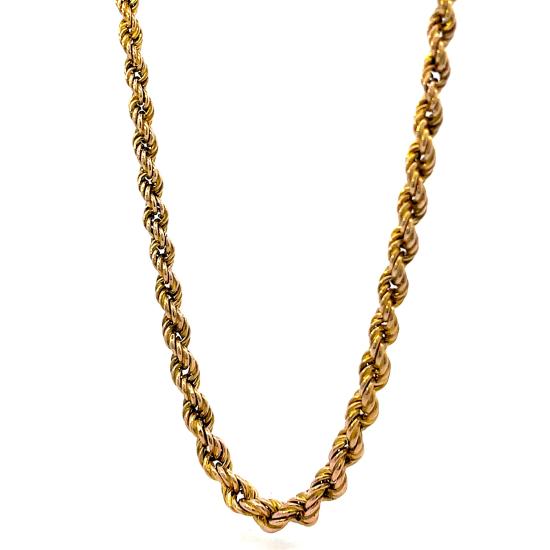 Řetízek z růžového zlata o ryzosti 585/1000, punc labuť. Váha 9,90 g, délka 46,5 cm, v nejširším bodě 6 mm.
